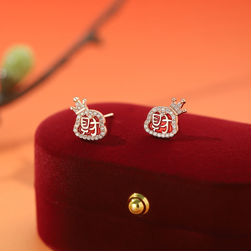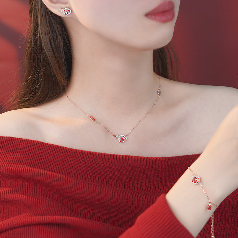 E廠【YC4078N】原創S999足銀蛇年耳環/項鍊/手鍊新年送禮紅色三件組首飾 24.10-1