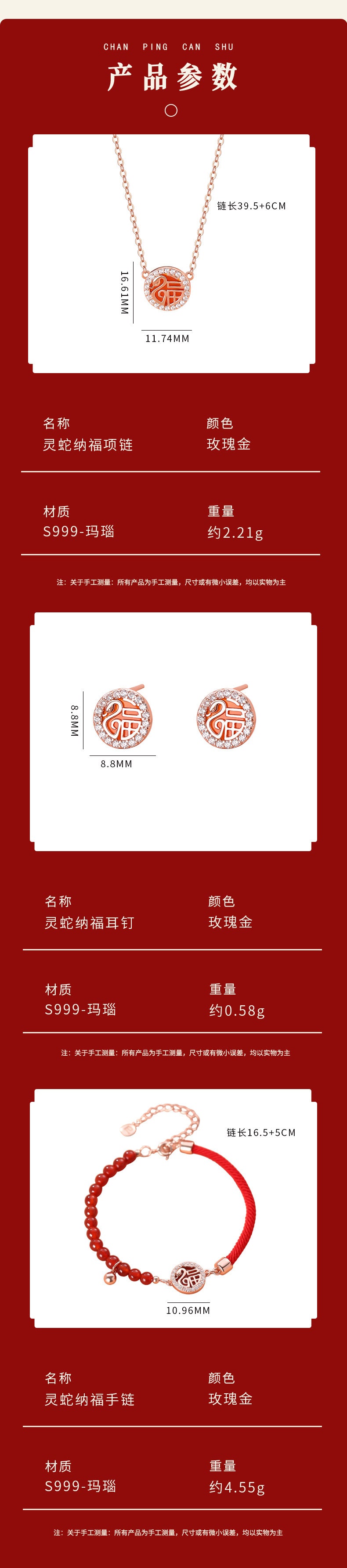 E廠【YC4079N】S999足銀巳蛇本命年福字靈蛇耳環項鍊手鍊三件套裝 24.09-4