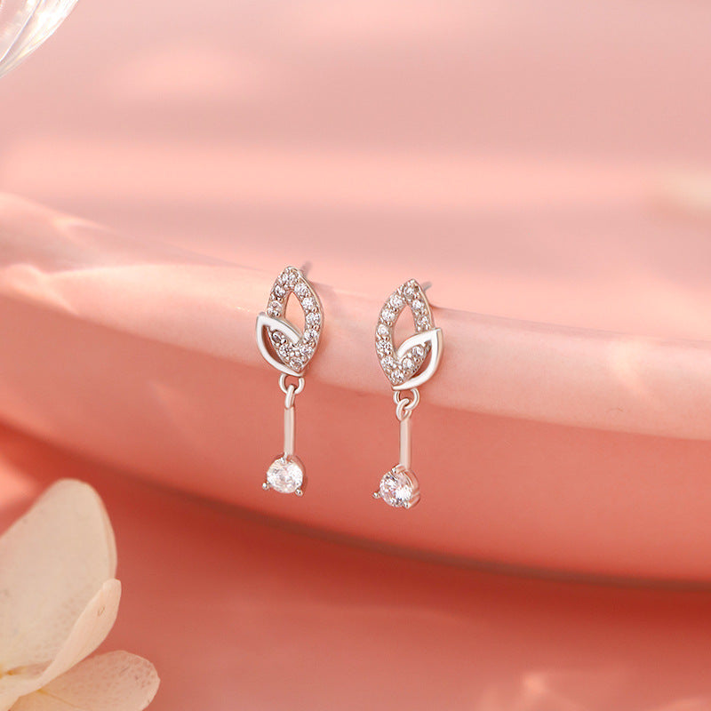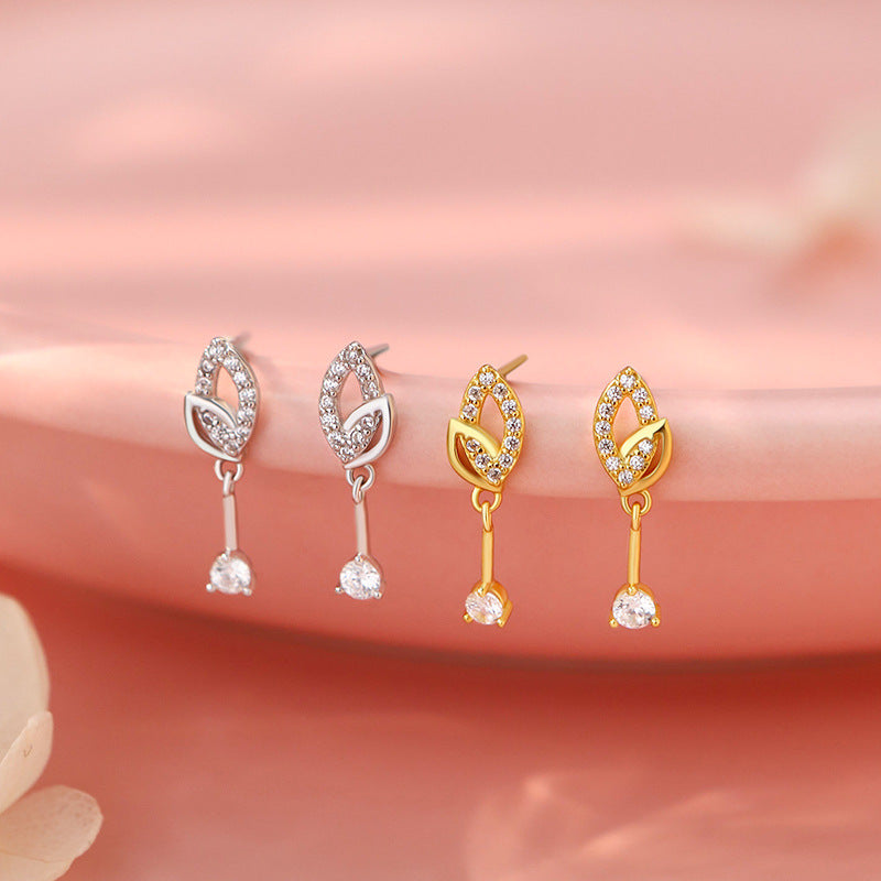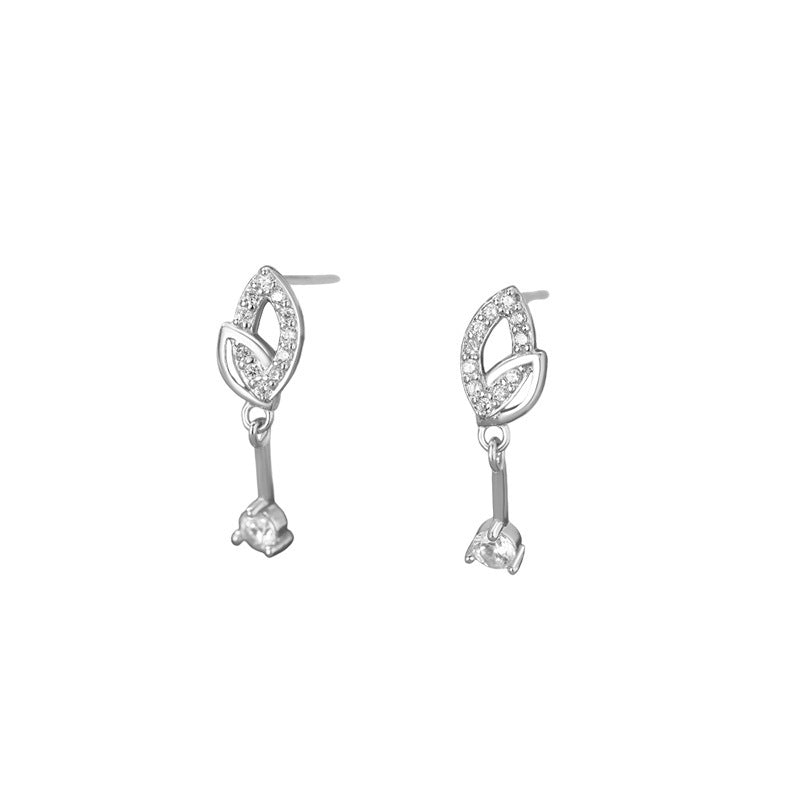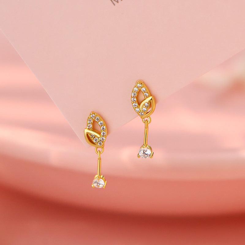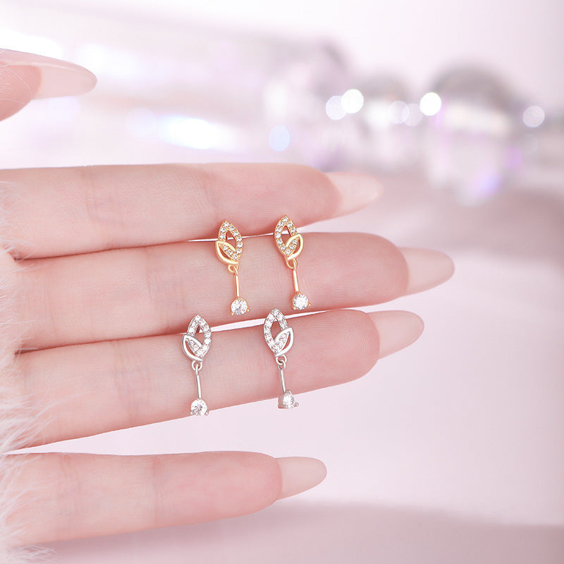 E廠【YC4083E】S999足銀精美樹葉鋯石耳環女森系輕奢氣質小眾高級感耳飾 25.10-3