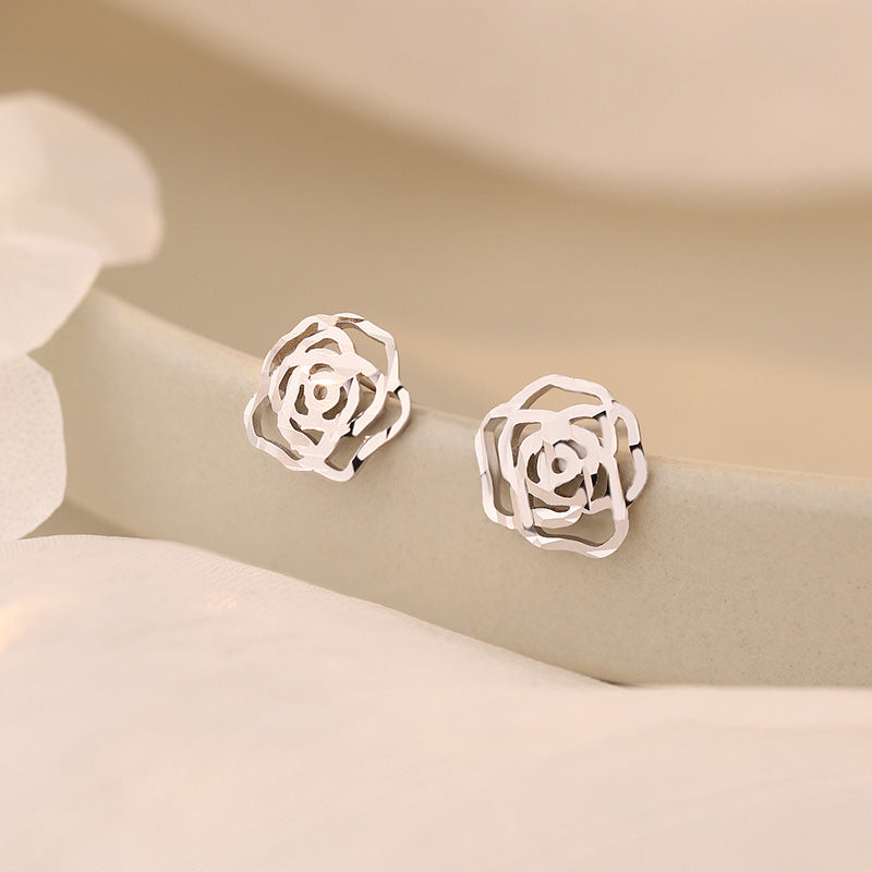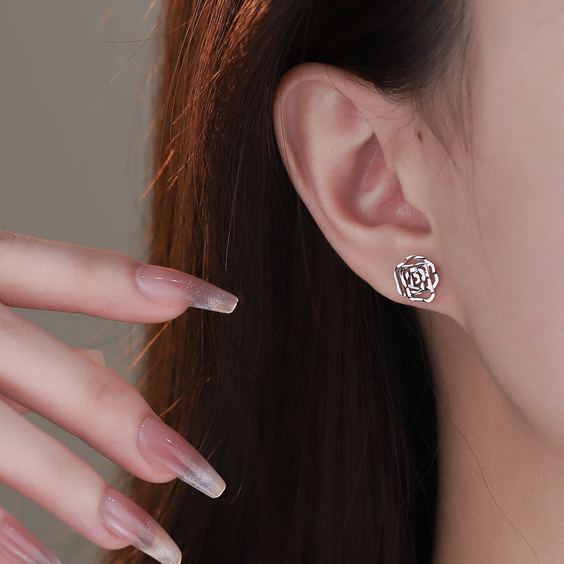 E廠【YC4164E】S925純銀玫瑰花朵耳環新款氣質甜美可愛百搭小眾時尚耳飾 24.12-2