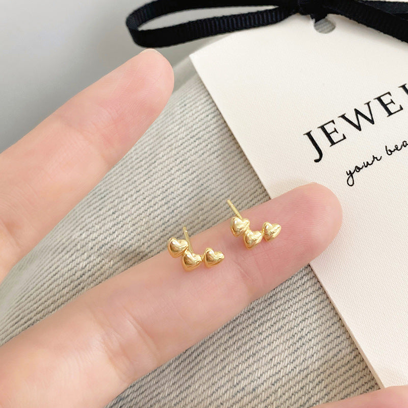 E廠【YC4352E】S925純銀小巧三顆愛心耳環百搭心型甜美耳飾 24.07-1