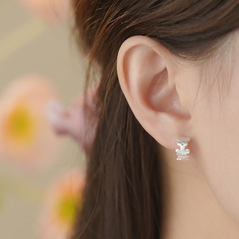 E廠【YC4367E】 S925純銀拉絲梨耳飾時尚精緻文藝韓風復古復古小眾耳飾 25.06-2