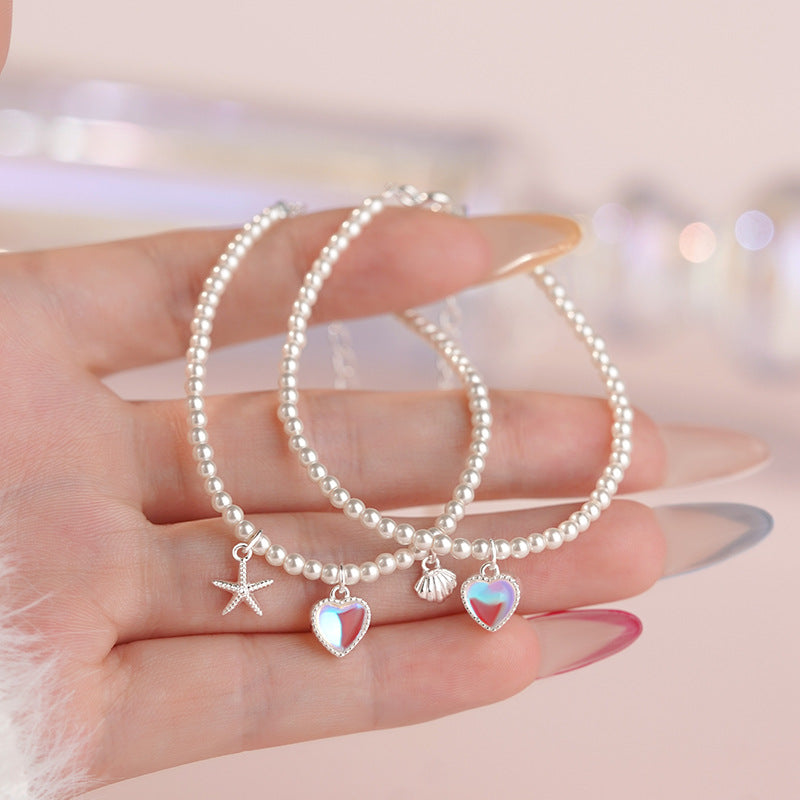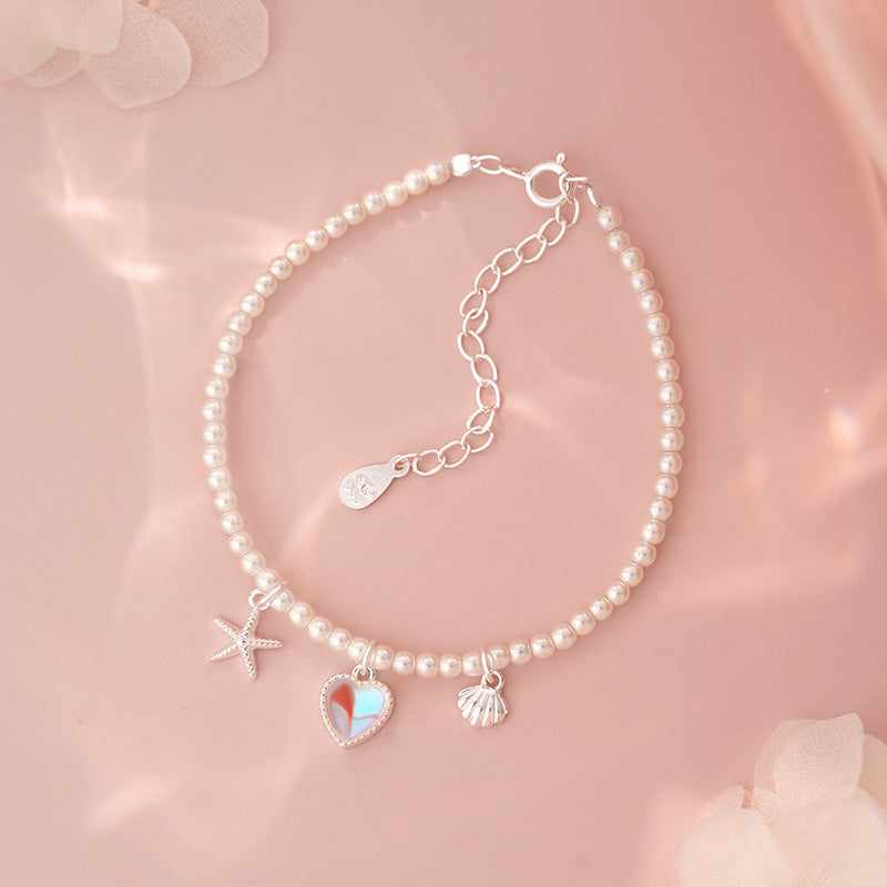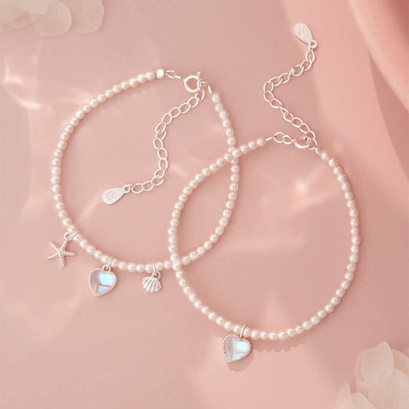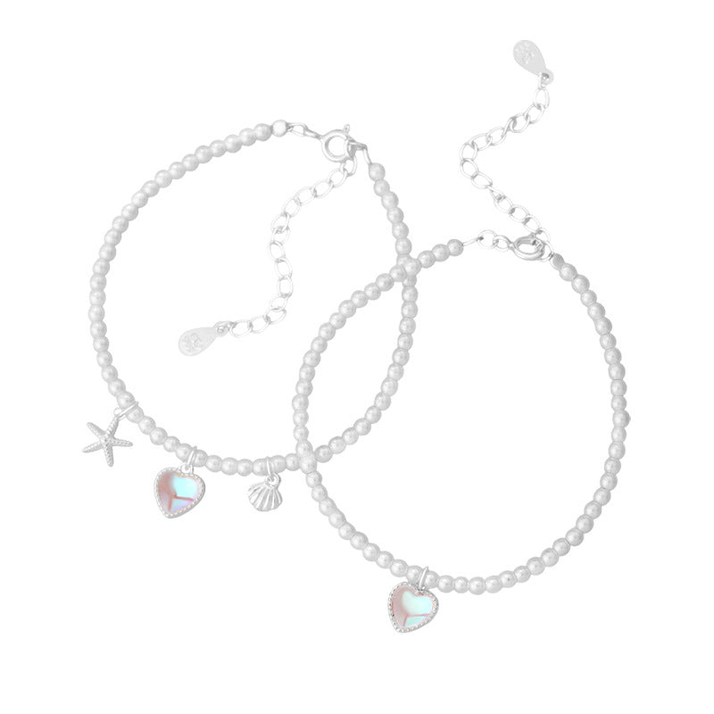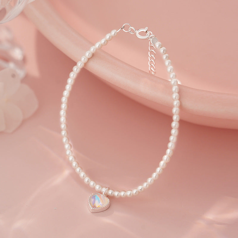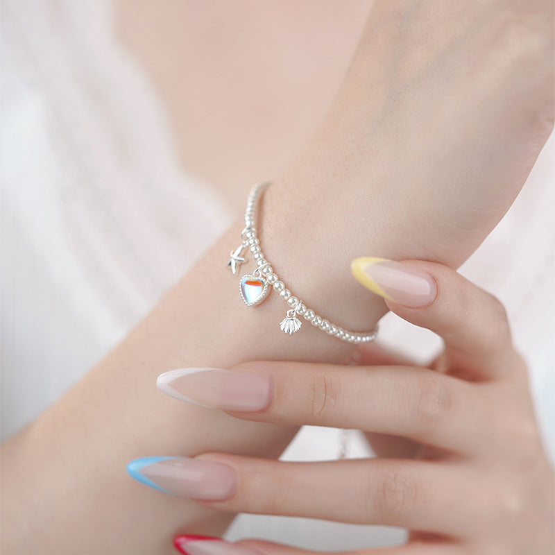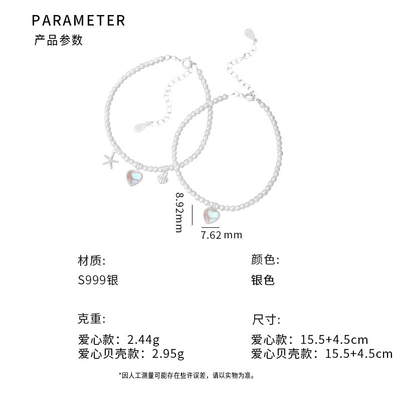 E廠【YC4369SL】S999足銀愛心貝殼手鍊簡約精緻甜美疊戴韓風日常通勤手飾 25.06-4