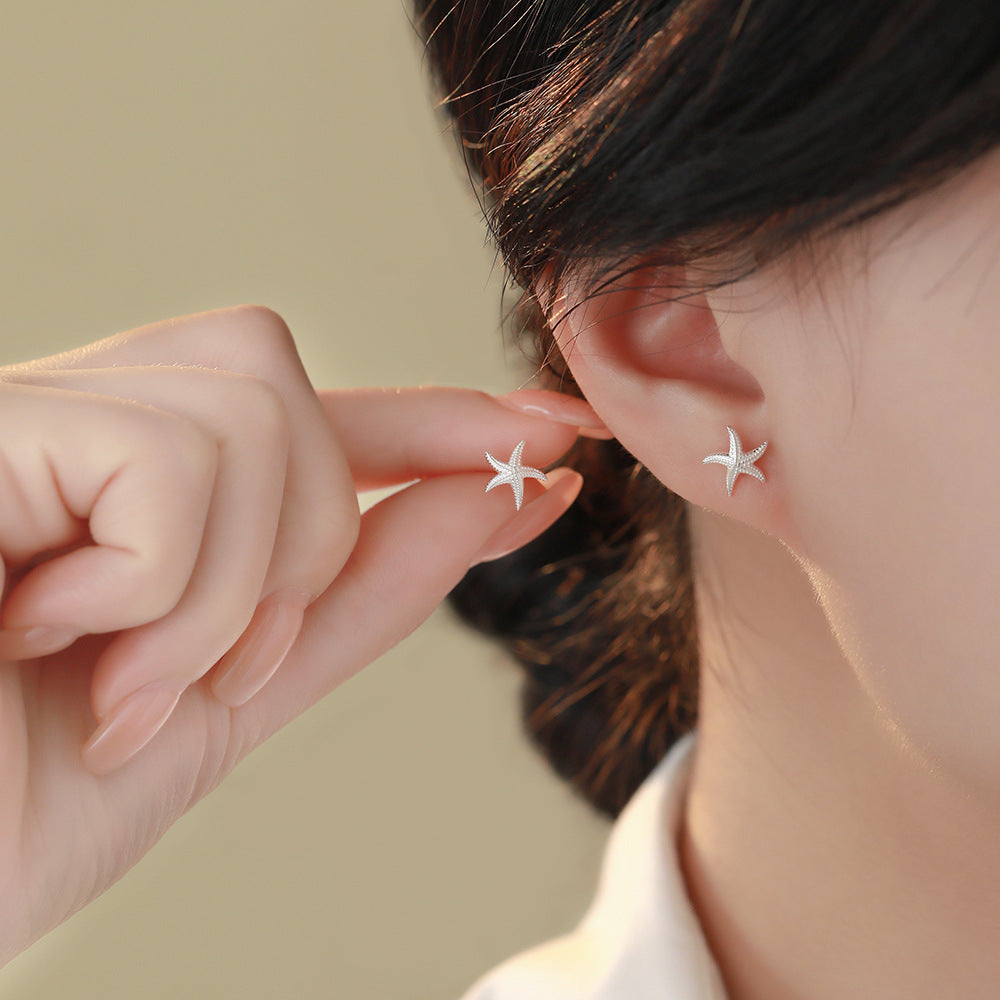 D廠【YC4414E】S925純銀可愛海星耳環女自然小巧小眾設計感可疊戴百搭耳飾 26.01-1