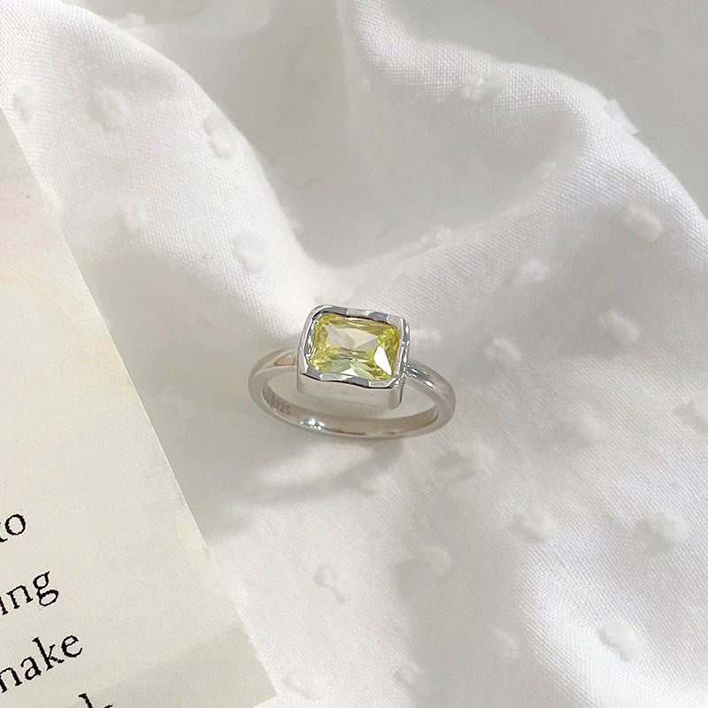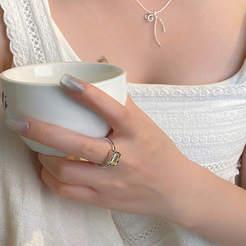 E廠【YC4452R】S925純銀高級感綠葡萄方鑽戒指女輕奢風小眾設計戒指 24.08-1