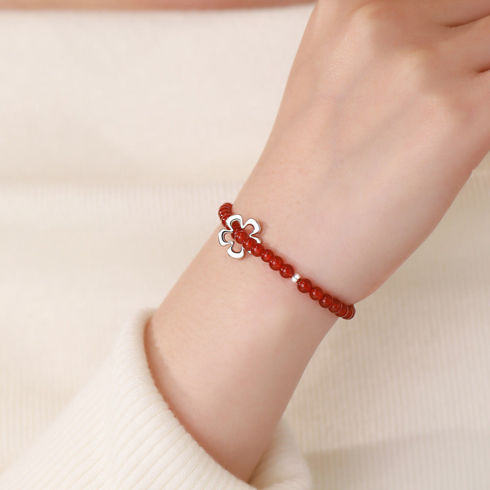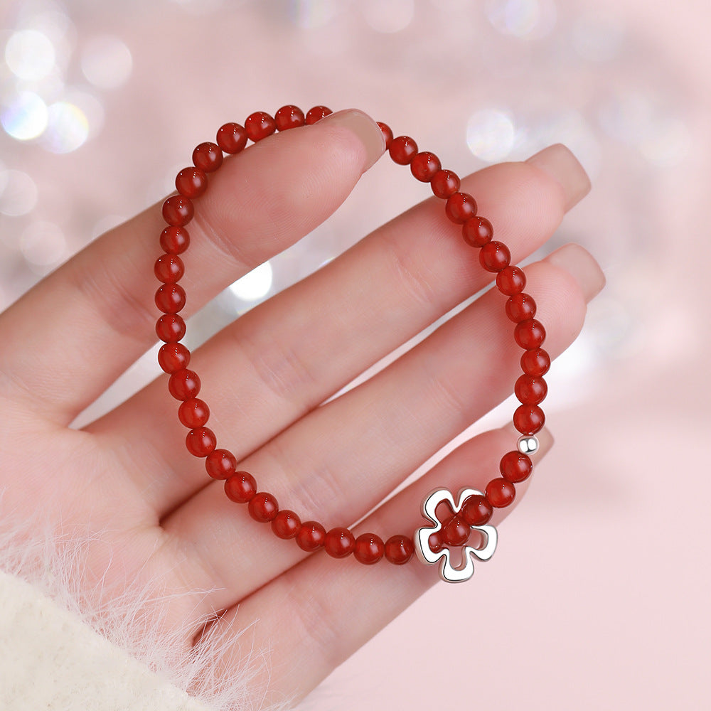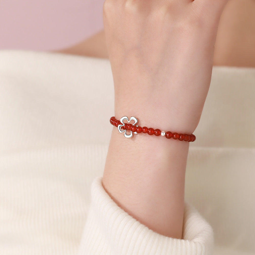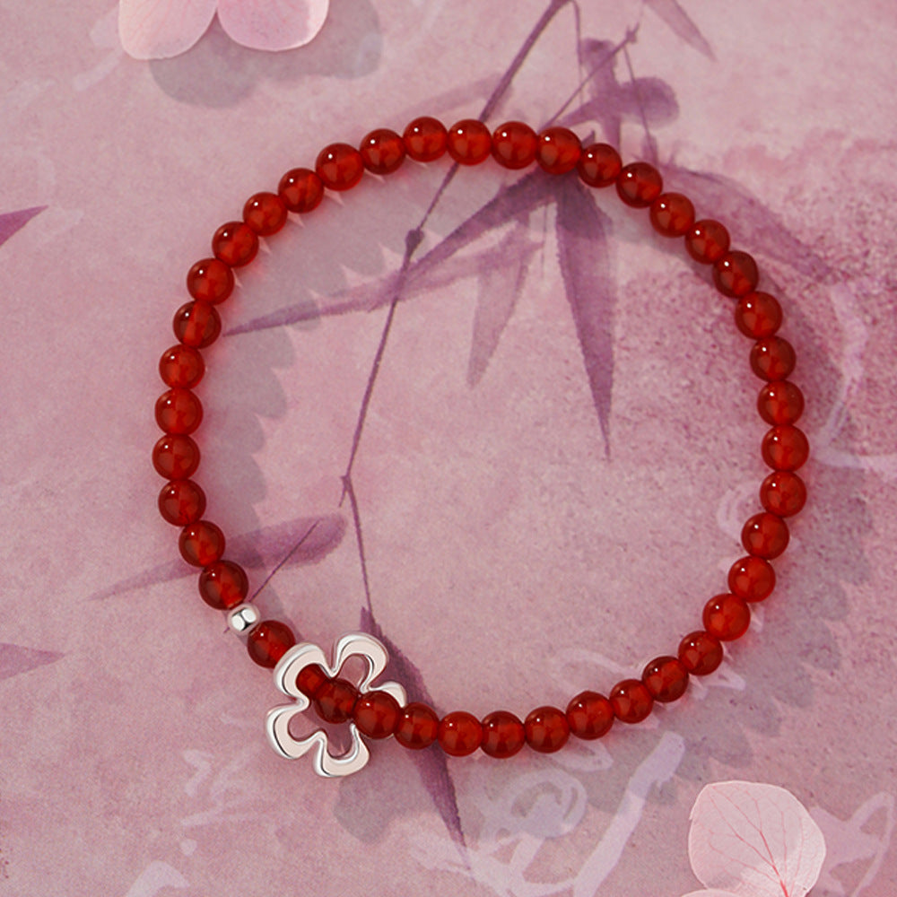D廠【YC4477SL】純銀S925紅瑪瑙花朵手鍊復古個性簡約設計感時尚百搭精緻手飾 26.01-1