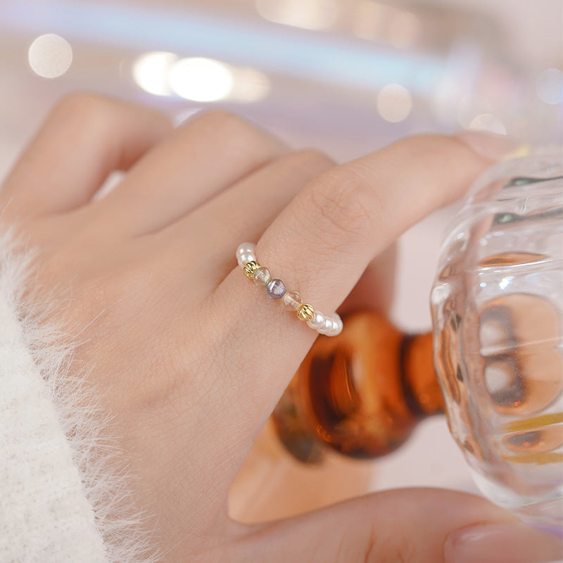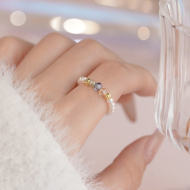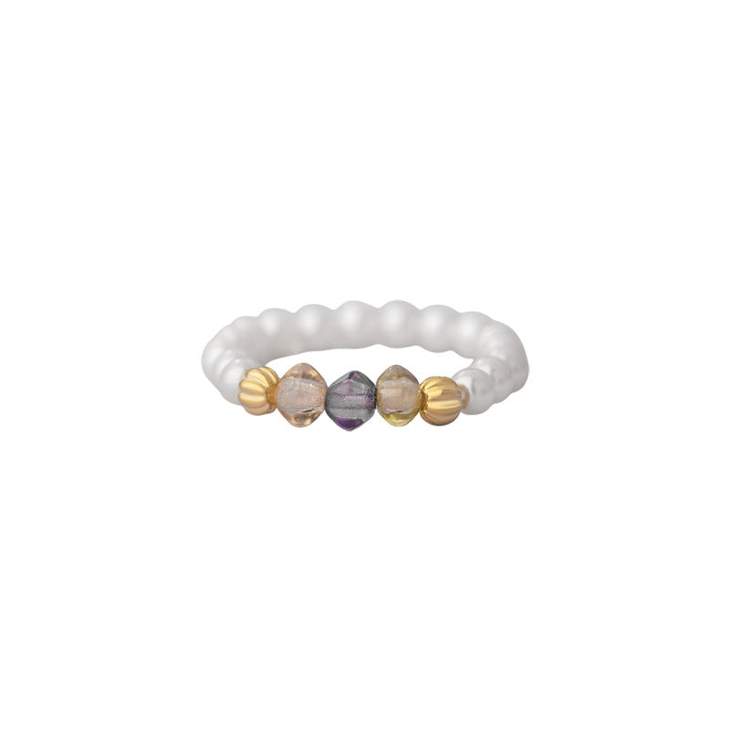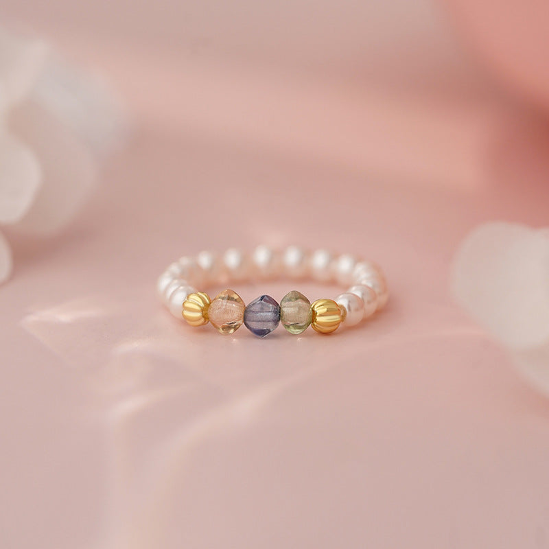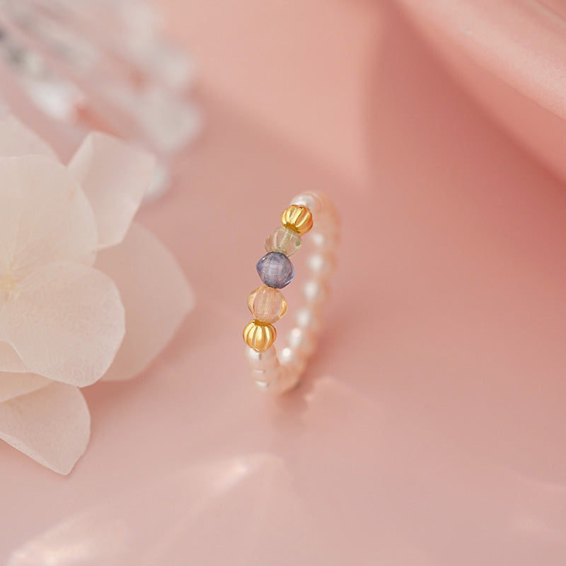 E廠【YC4737R】S925純銀彩珠珍珠戒指新款韓式簡約多巴胺夏季清新手飾 25.07-1