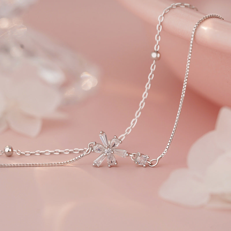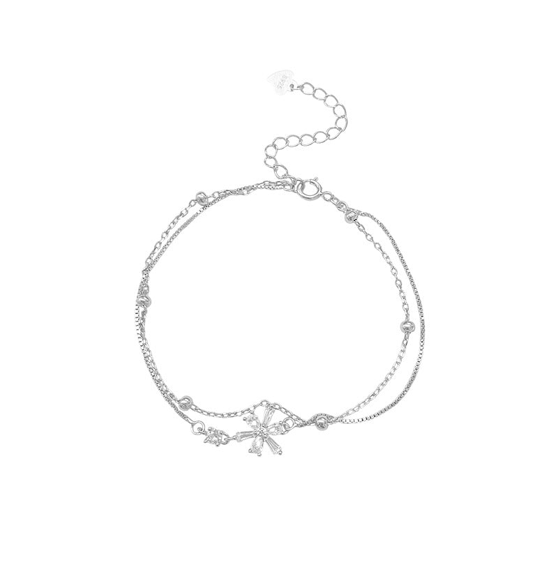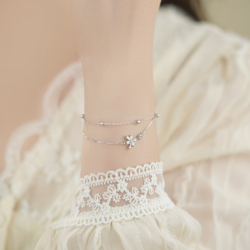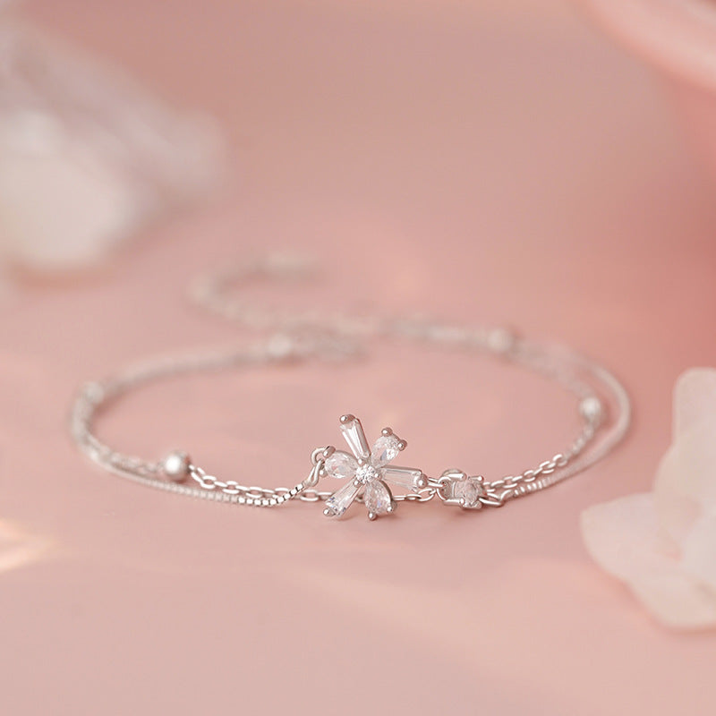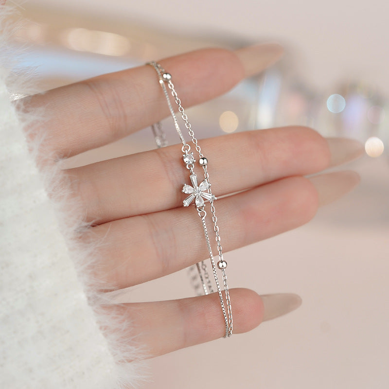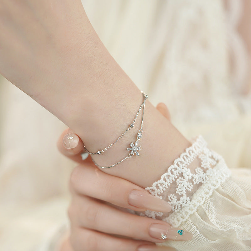 E廠 【YC4749SL】S925純銀花朵雙層手鍊清新文藝韓風百搭森系氣質簡約手飾 25.06-2