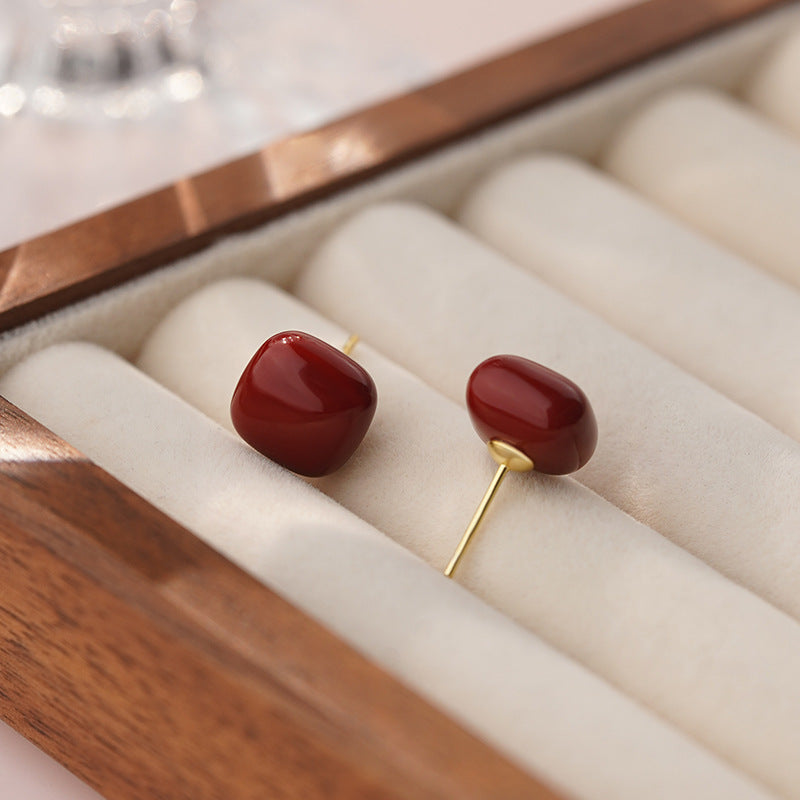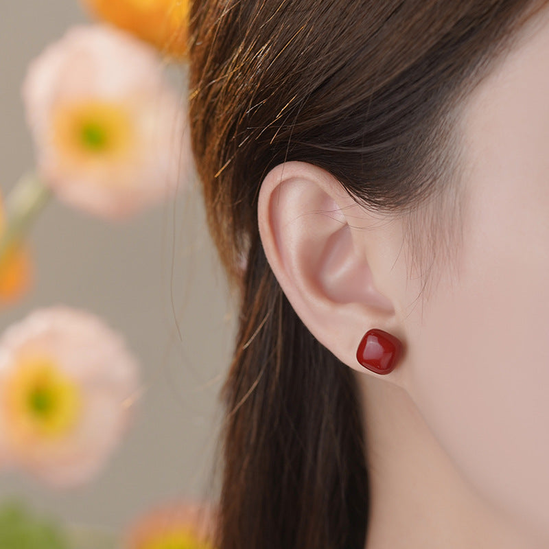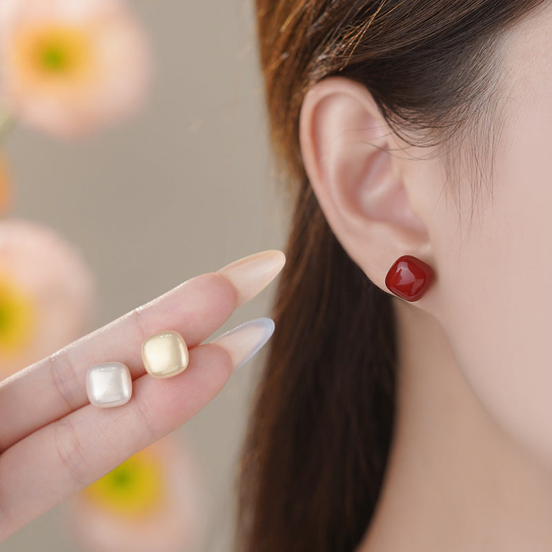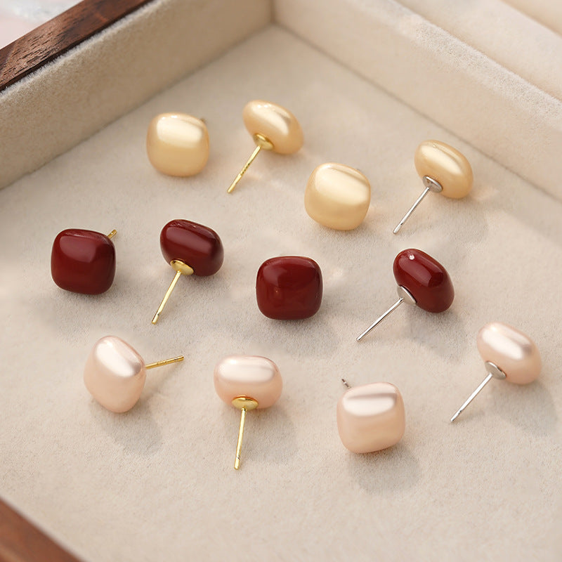 E廠【YC4823E】S925純銀氣質復古方糖耳環女優雅法式文藝甜美簡約高級感耳飾 25.07-1