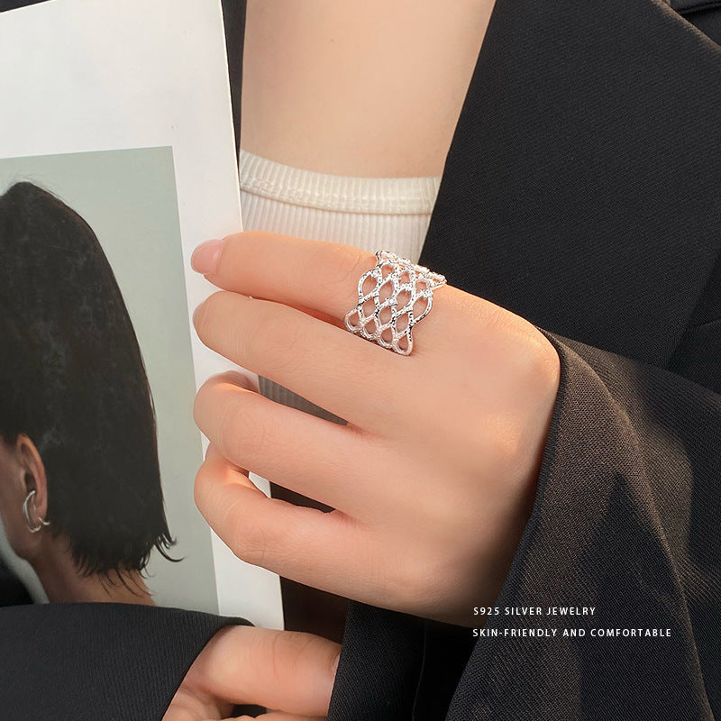 E廠【YC4885R】S925純銀時尚鏤空荊棘戒指女小眾設計感個性冷淡風開口戒 24.02-1