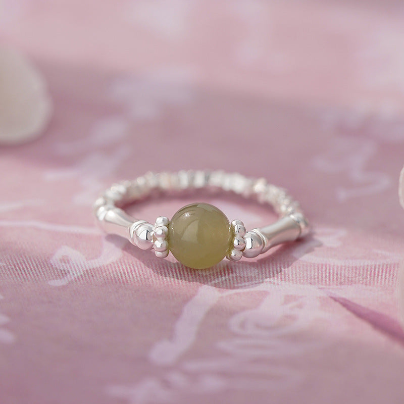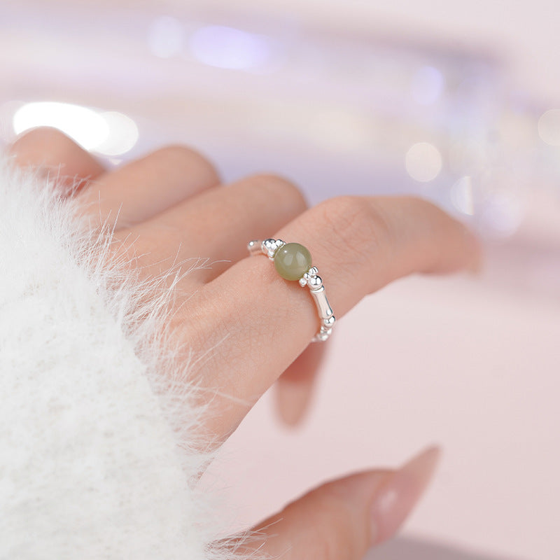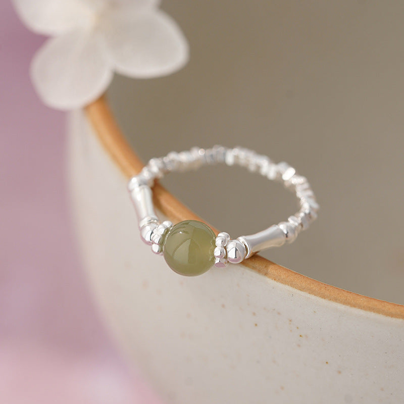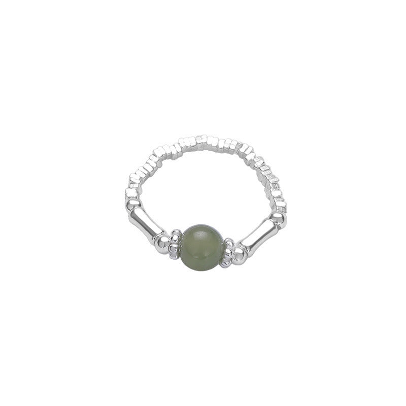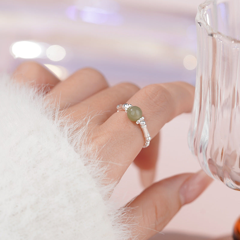D廠【YC4900R】足銀S999新中式和田玉竹節碎銀戒指女時尚個性國風指環 25.11-3