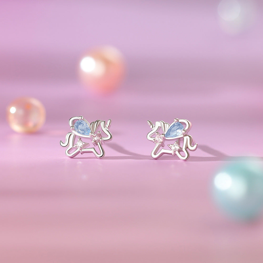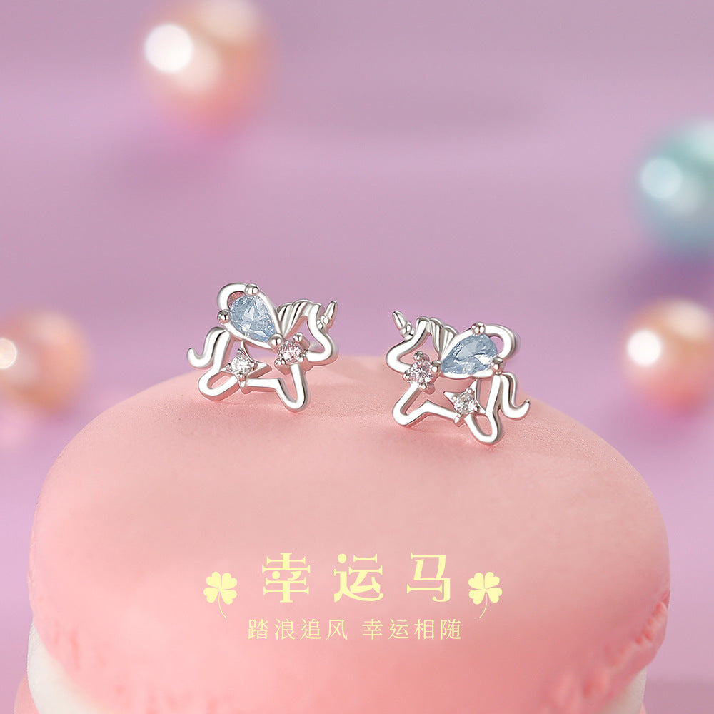 D廠【YC4943E】原創足銀S999彩鋯獨角獸耳環幸運馬可愛溫柔清新本命年耳飾 25.12-3
