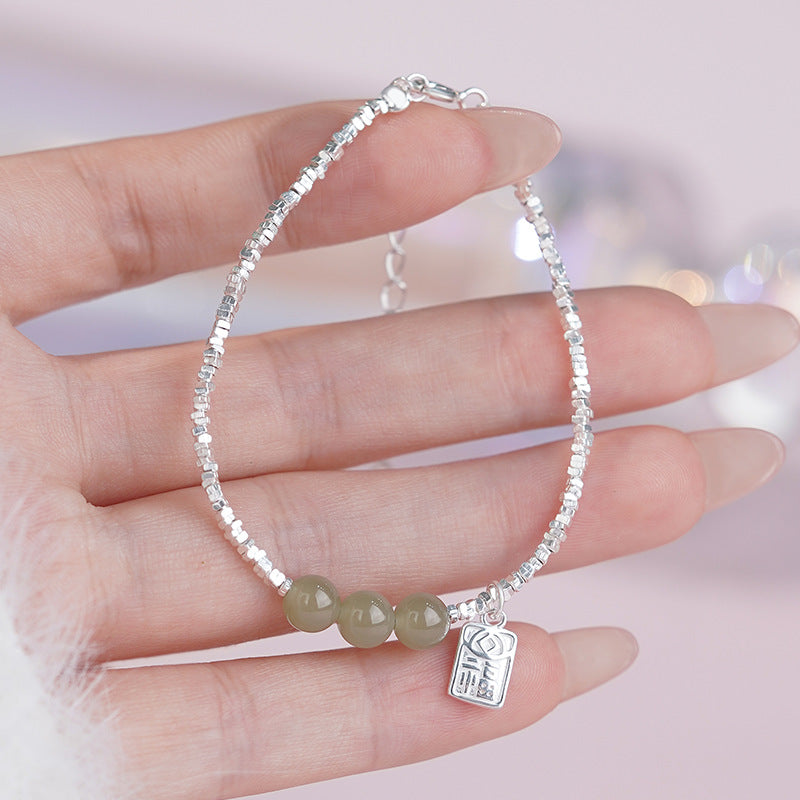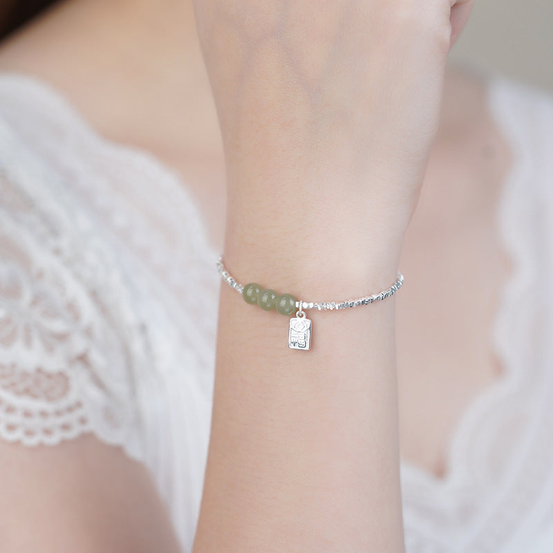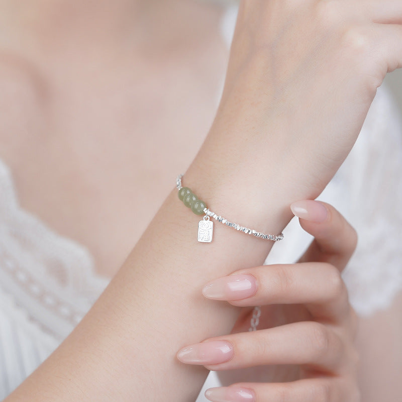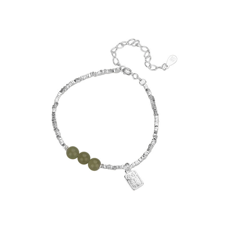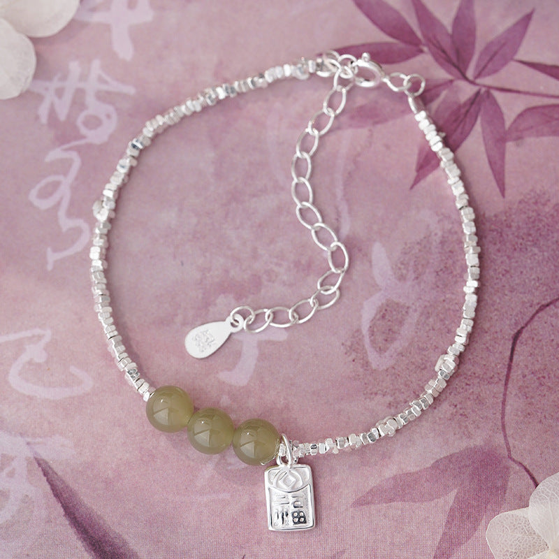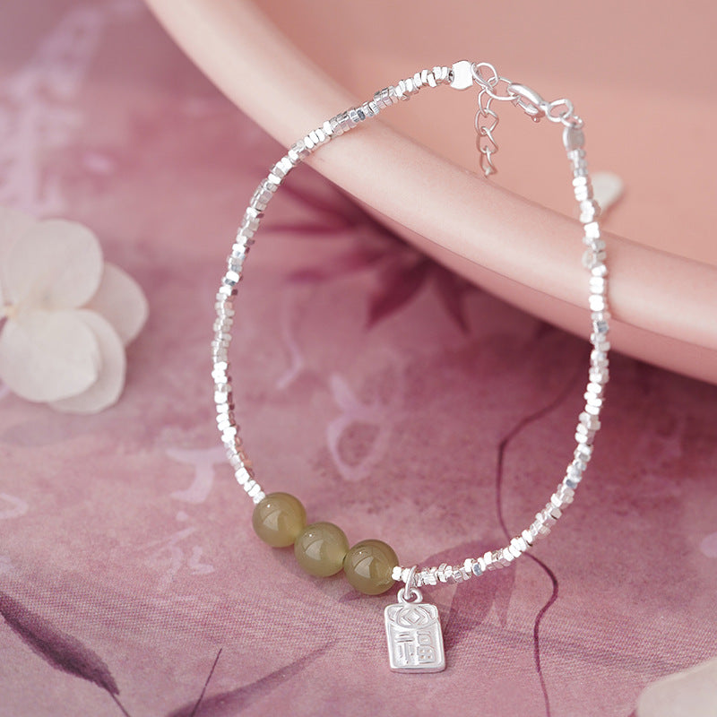 E廠【YC4965SL】S999足銀新中式和田玉碎銀子福牌手鍊女國風個性小眾氣質手飾 25.10-4