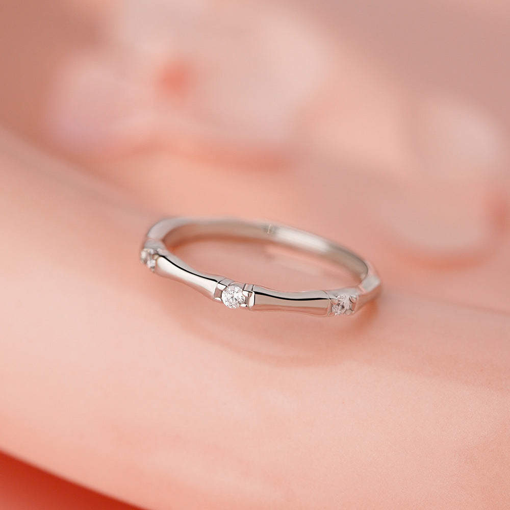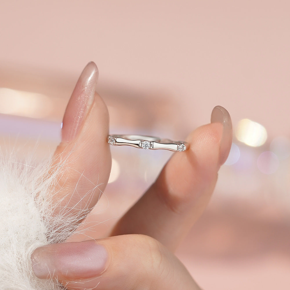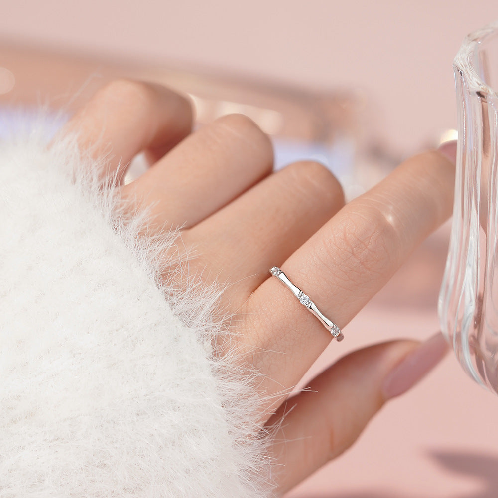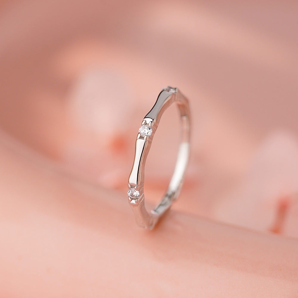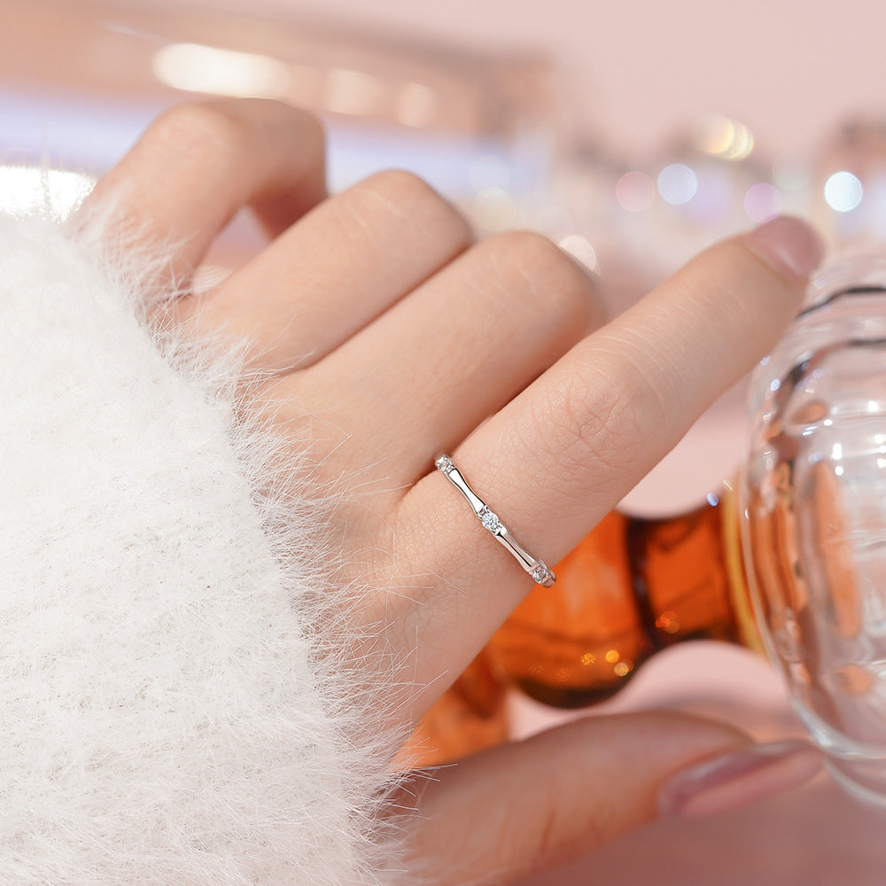 D廠【YC5258R】S999足銀新中式竹節鋯石戒指女國風小眾文藝復古百搭森係指環 25.12-1