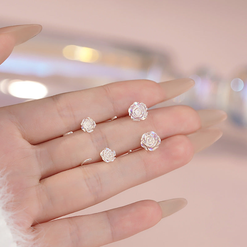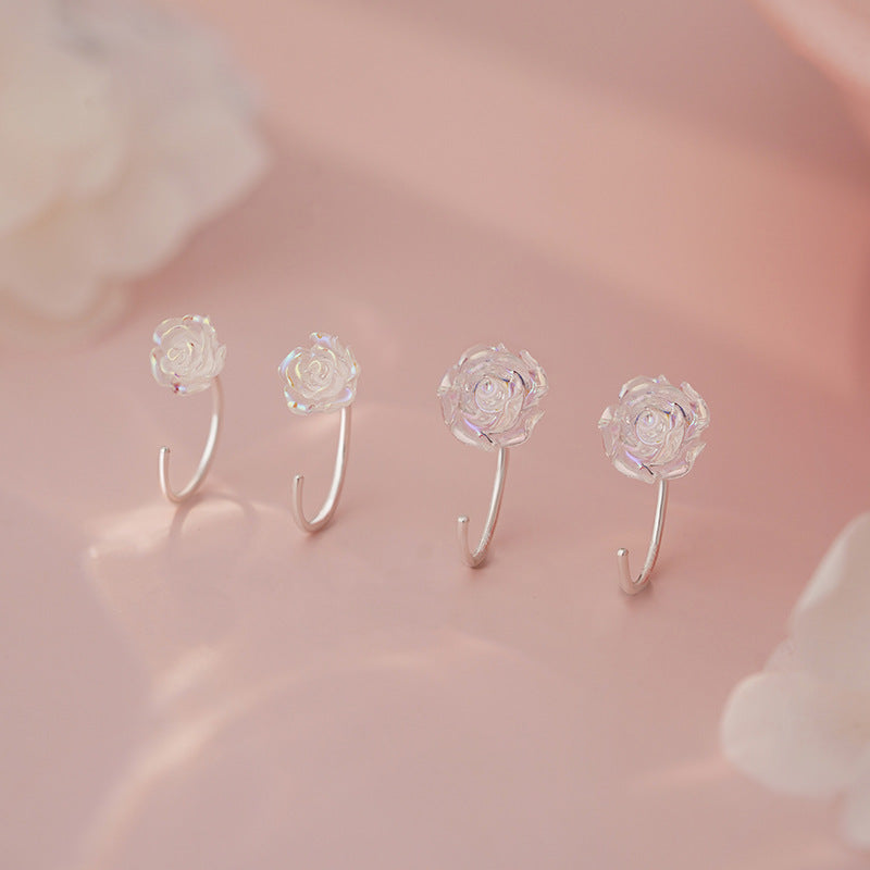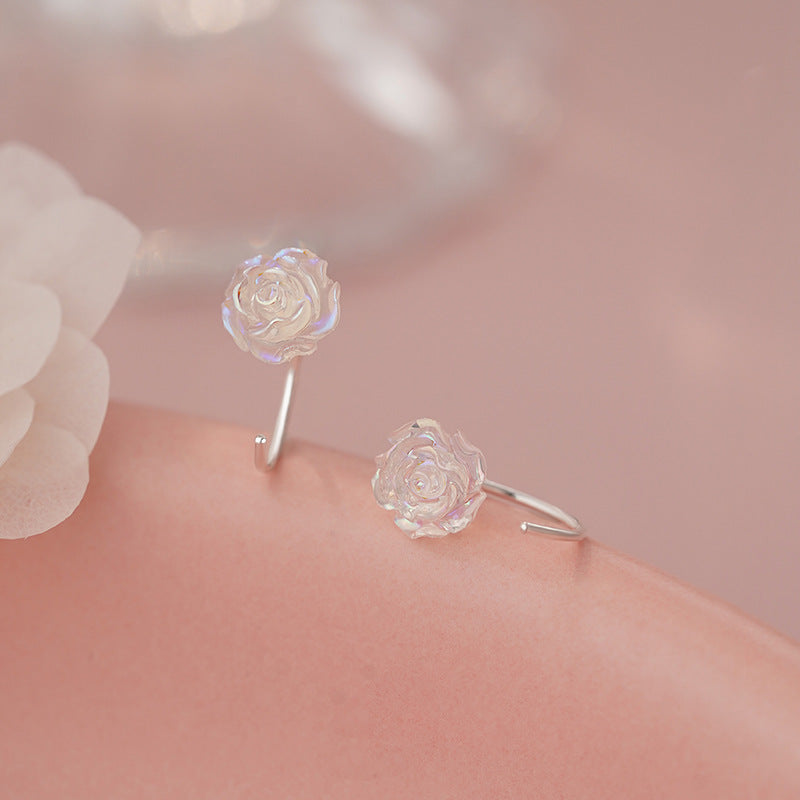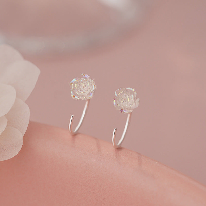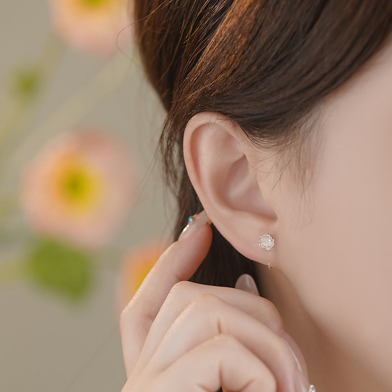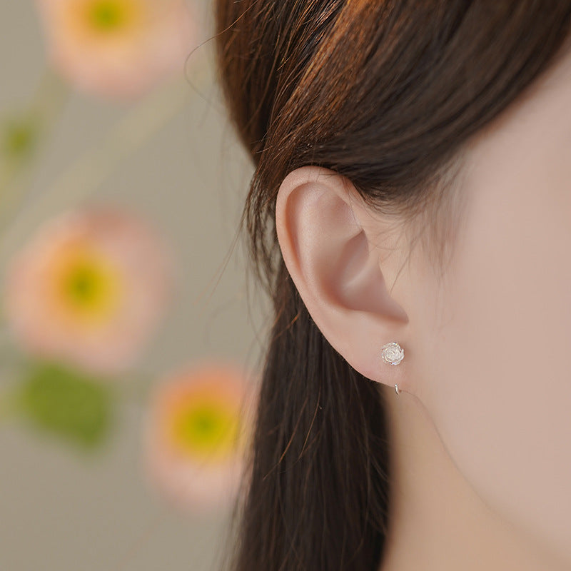 E廠【YC5317E】S999足銀玫瑰花耳環法式復古文藝療癒炫彩氣質小眾耳飾 25.06-3