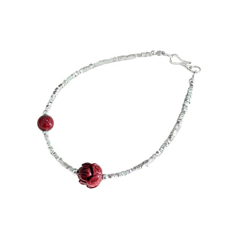 E廠【YC5329SL】S925純銀本命年紫金砂蓮花碎銀子手鍊女輕奢高級感手飾品 24.02-3