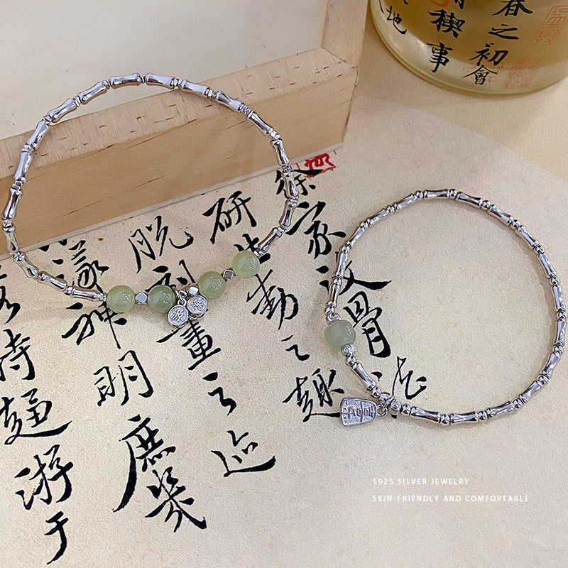 E廠【YC5339-5350SL】S925純銀新中式喜樂竹節手鍊女國風漢服小眾設計感配件 24.04-2