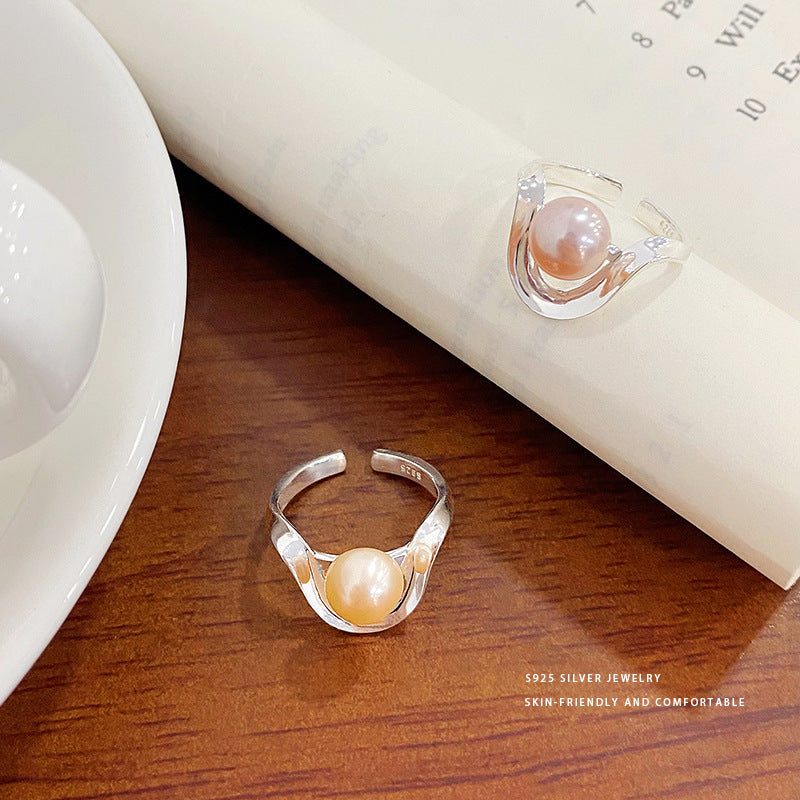 E廠【YC5359R】S925純銀個性珍珠波浪戒指女法式氛圍感浪漫新款開口指環 24.05-1
