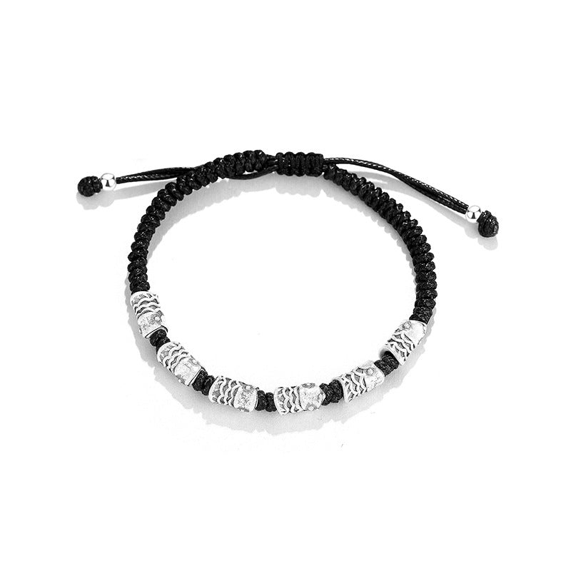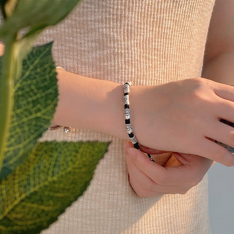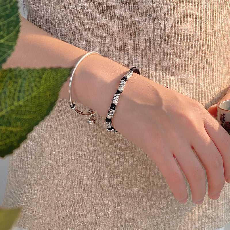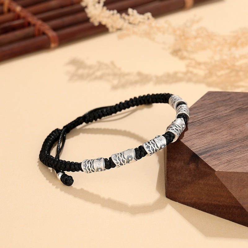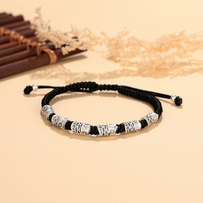 E廠【YC5359SL】S999足銀復古高級簡約情侶錦鯉黑繩手鍊小眾精緻編製手繩 24.06-2