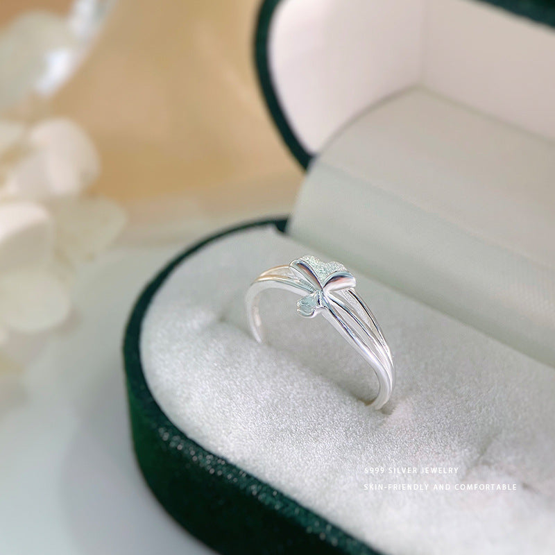 E廠【YC5373R】S999足銀精美杏葉戒指女秋冬季氣質氛圍感輕奢可調整指環 24.02-3