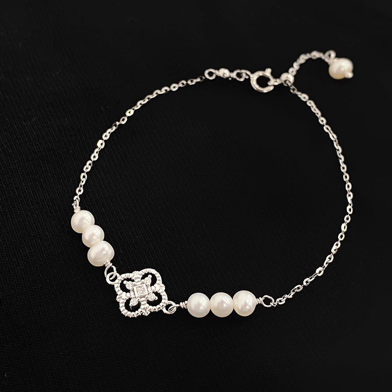 E廠【YC5381SL】S925純銀輕奢小清新四葉花珍珠手鍊女百搭小眾個性手鍊 24.06-2