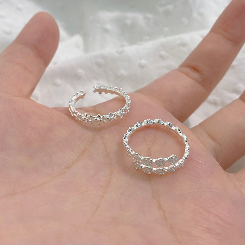 E廠【YC5386R】S999足銀山茶花戒指花朵戒指休閒文藝氣質小眾清新手飾 24.08-1