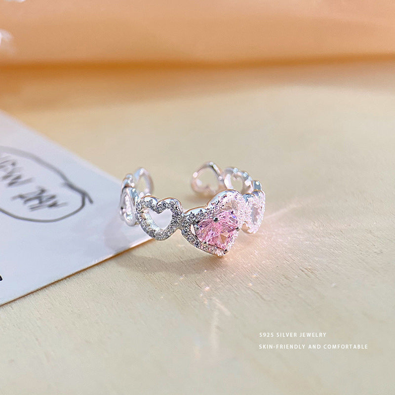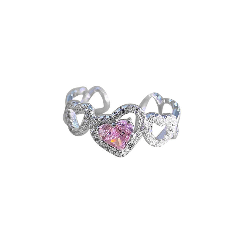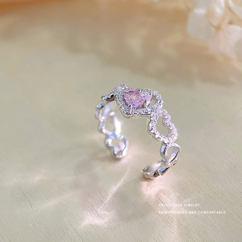 E廠【YC5425R】S925純銀甜美粉鑽愛心戒指女輕奢少女心公主風開口戒指 24.02-3