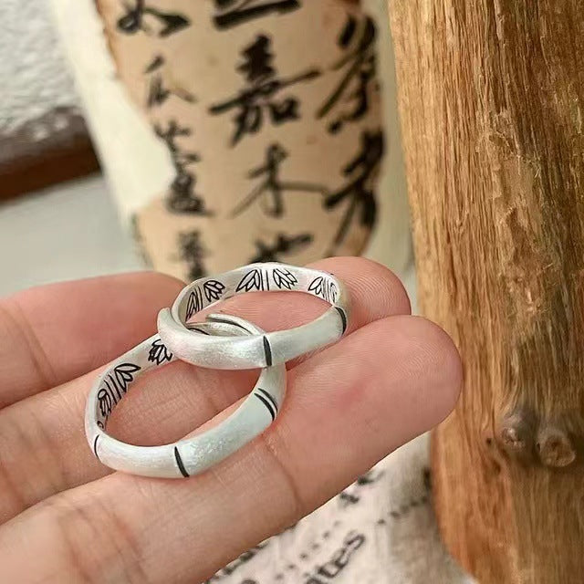 E廠【YC5432R】S999足銀新中式節高升竹節戒指女文藝復古霧面磨砂指環 24.03-3