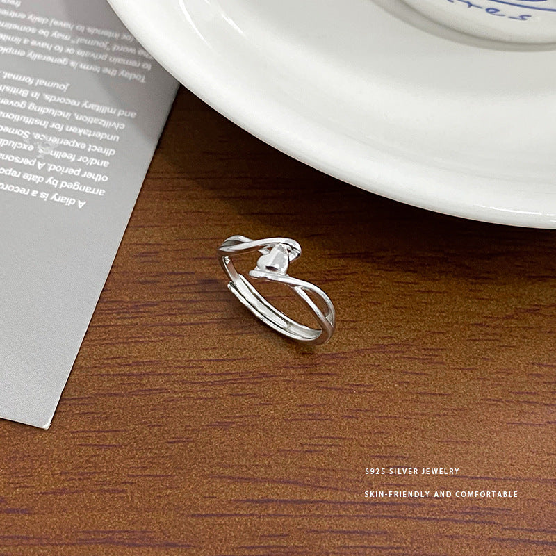 E廠【YC5434R】S925銀清新纏繞愛心戒指女ins風時尚夏季百搭可調式戒指 24.05-1