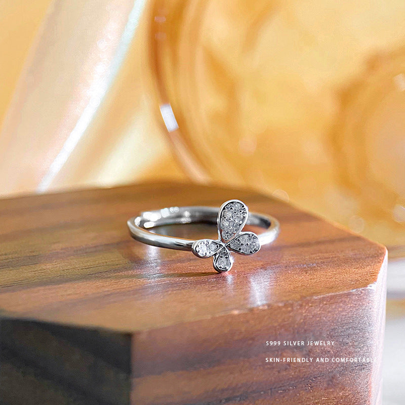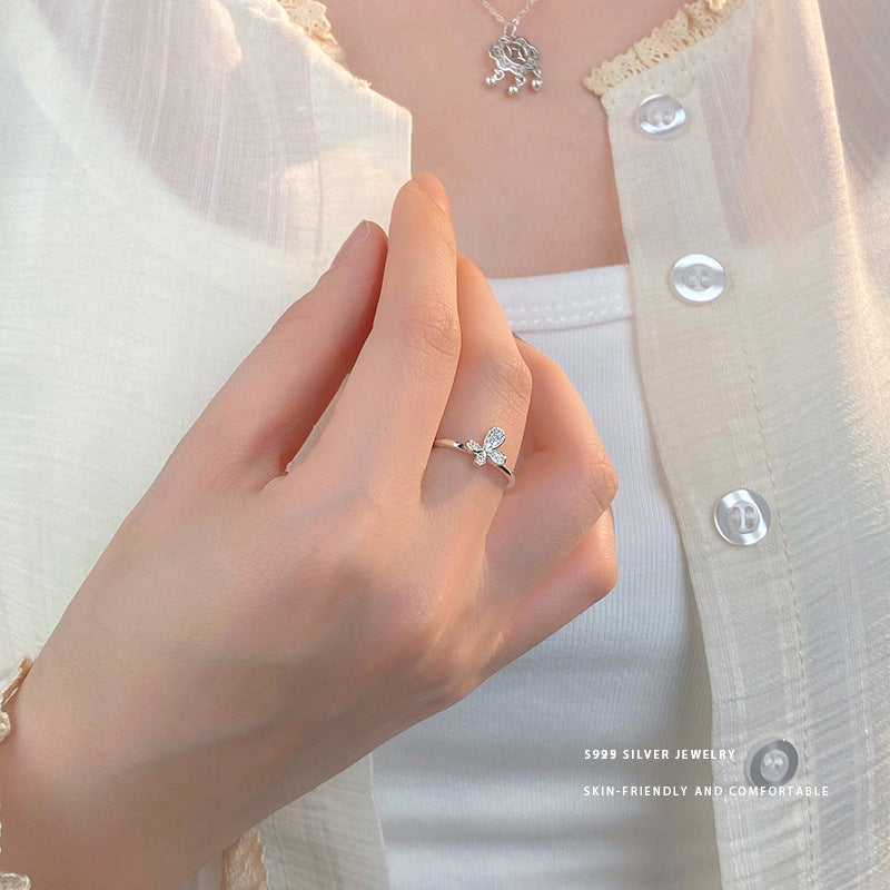 E廠【YC5442R】S999足銀簡約滿鑽蝴蝶戒指女時尚小眾設計感甜美百搭指環 24.04-3