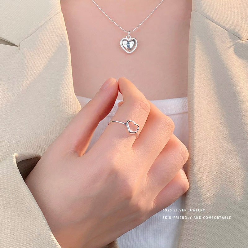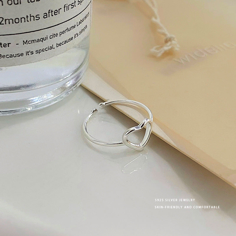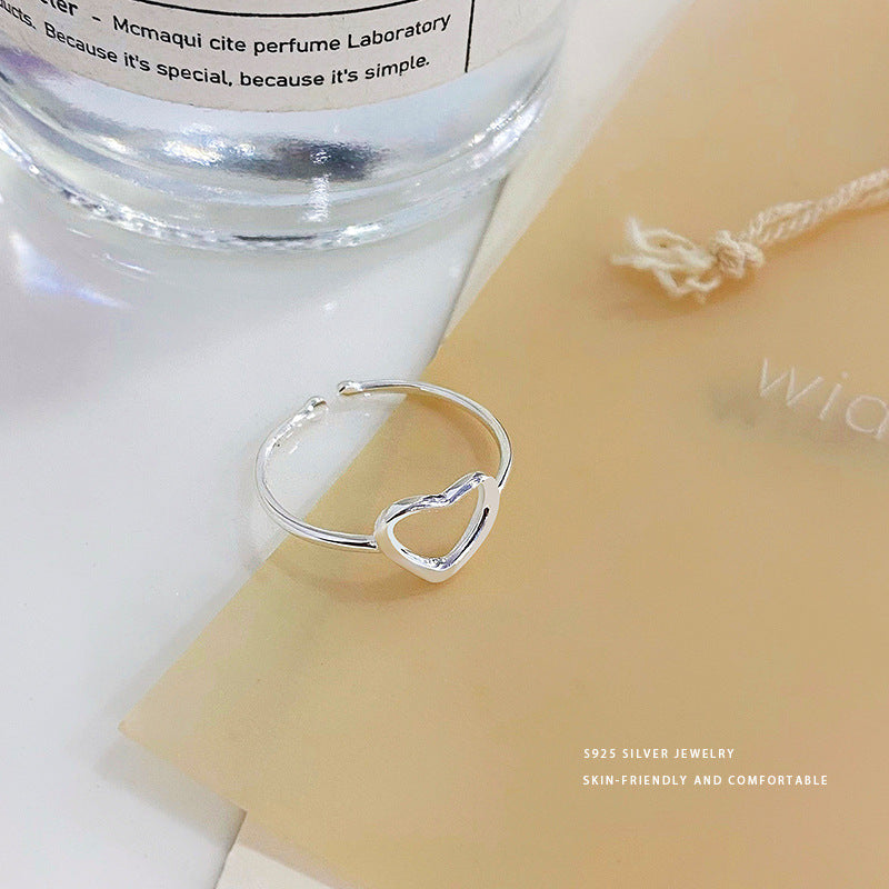 E廠【YC5449R】S925銀簡約鏤空愛心戒指女幾何線條感甜美新款爆款可調指環 24.05-1