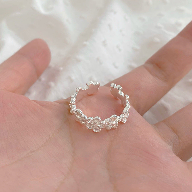 E廠【YC5468R】S999足銀花朵戒指小眾高級簡約可愛甜美設計感小清新手飾 24.07-4