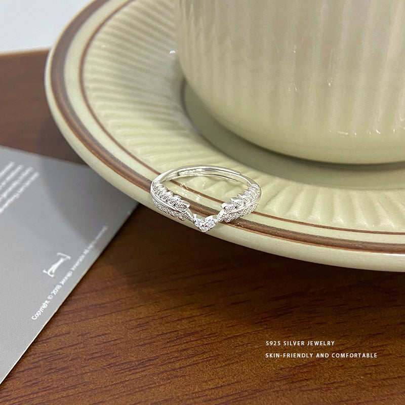 E廠【YC5484R】S925純銀精美麥穗愛心戒指女輕奢高級感小眾設計感指環 24.05-1