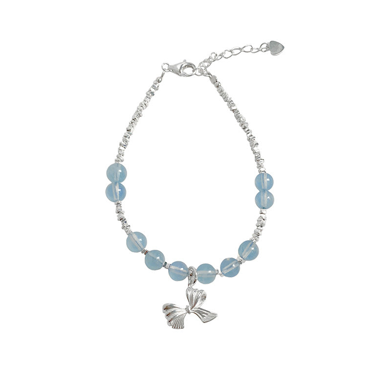 E廠【YC5517SL】S925純銀小眾設計款蝴蝶結草莓晶/海藍寶/灰月光甜美手飾 24.08-5