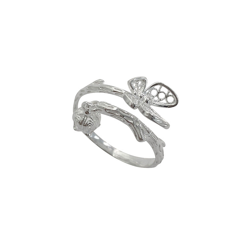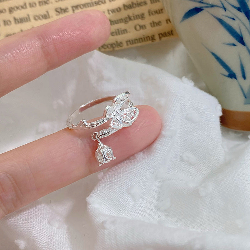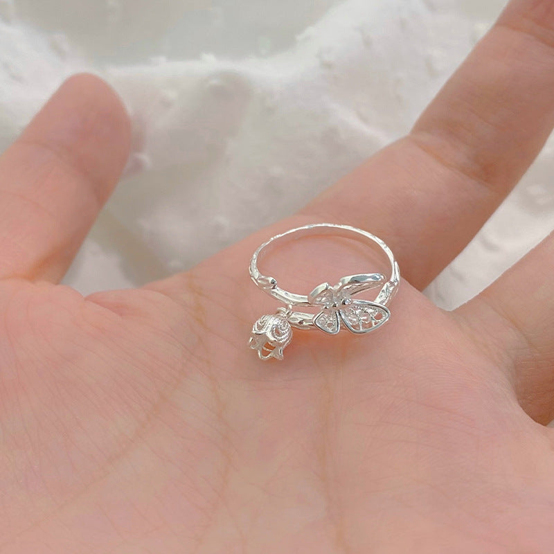 E廠【YC5542R】S999足銀蝴蝶鈴蘭花戒指清新甜美小眾氣質百搭精緻手飾 24.08-1