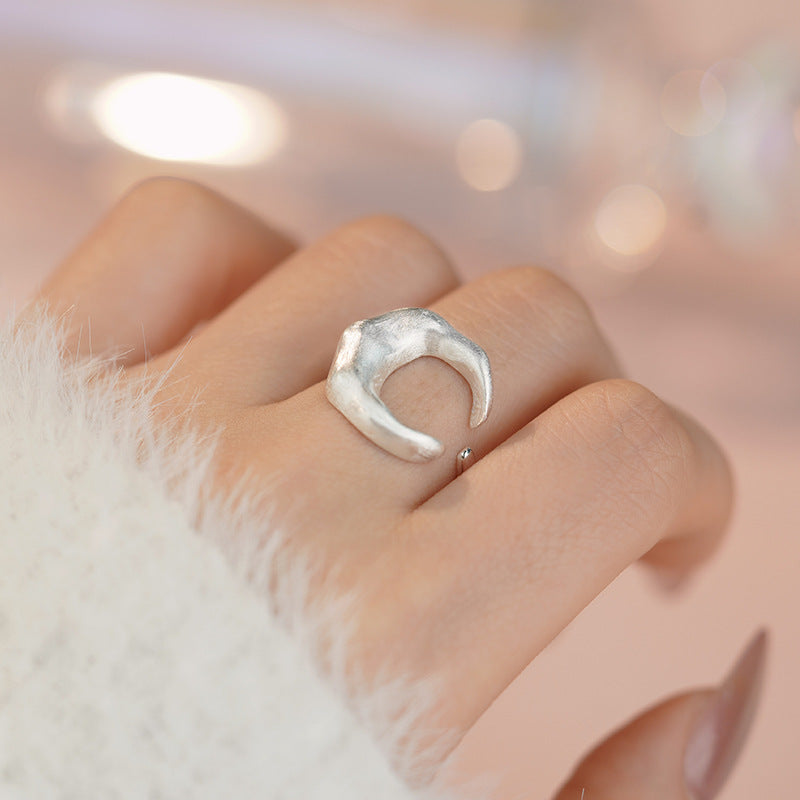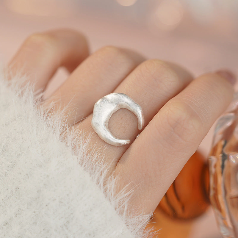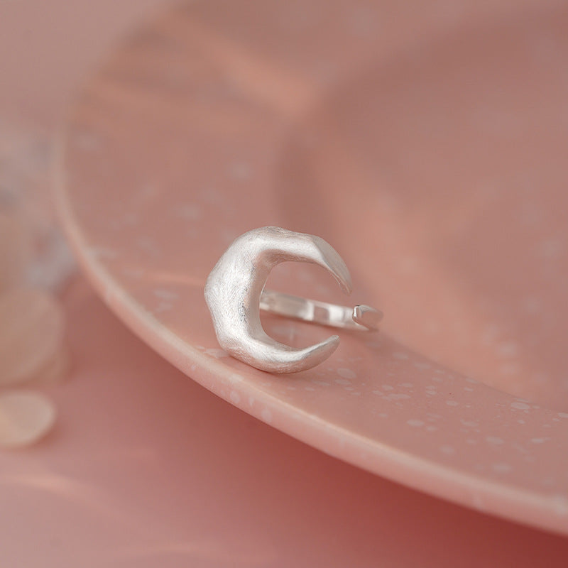E廠【YC5560R】S925純銀肌理月亮戒指質感小眾氣質清新甜美高級溫柔手飾 25.04-4