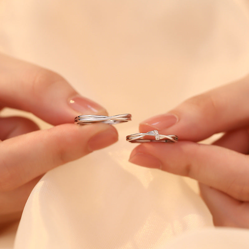 E廠【YC5567R】S999足銀閃沙交叉戒指七夕情人節禮物百搭簡約小眾手飾 24.07-4