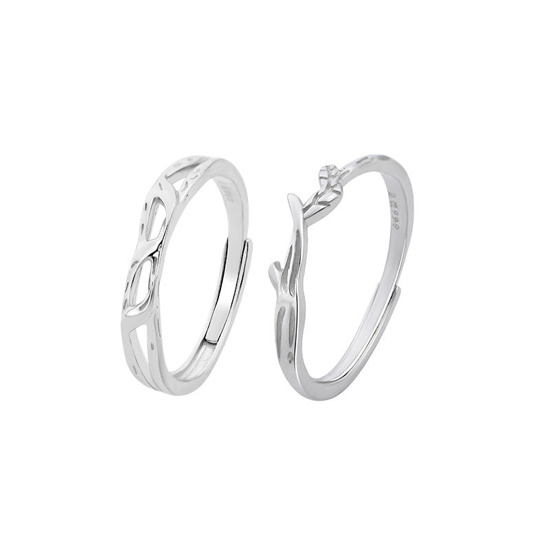 E廠【YC5577R】S999足銀連理枝情侶戒七夕情人節禮物小眾設計對戒手飾 24.07-4