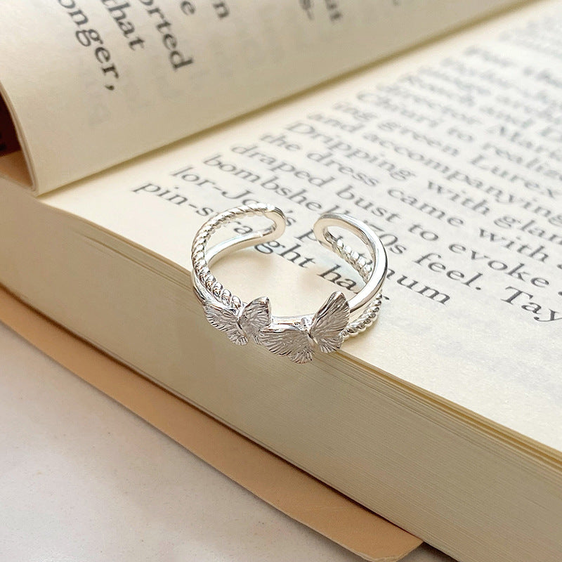 E廠【YC5583R】S925純銀個性蝴蝶戒指女簡約時尚甜美氣質小眾設計開口環 24.08-5