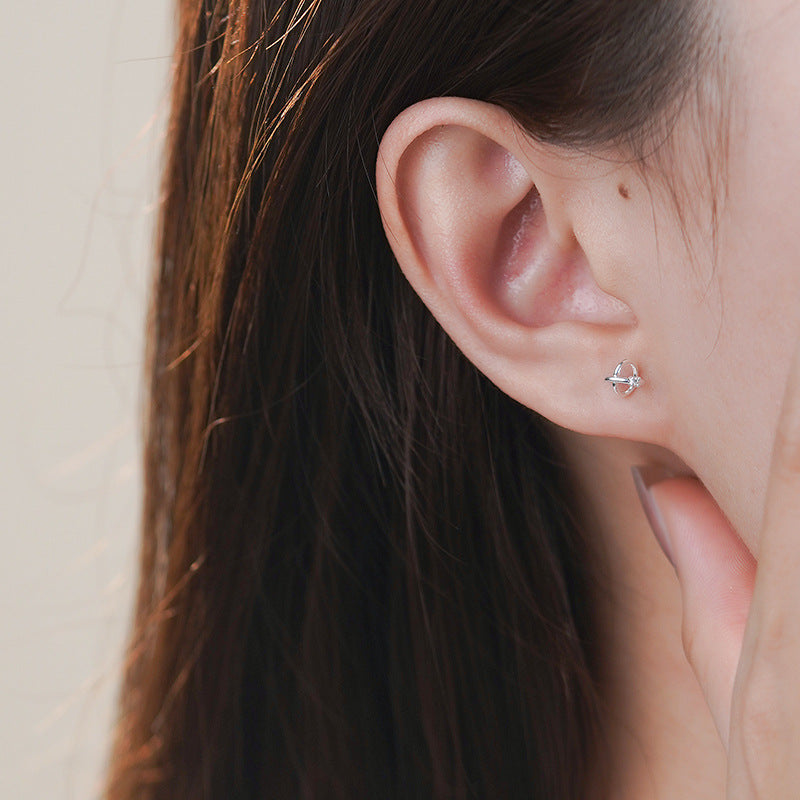 E廠【YC6005E】S999足銀星球鋯石耳環極簡童趣可愛清新甜美精緻小巧耳飾 24.12-2