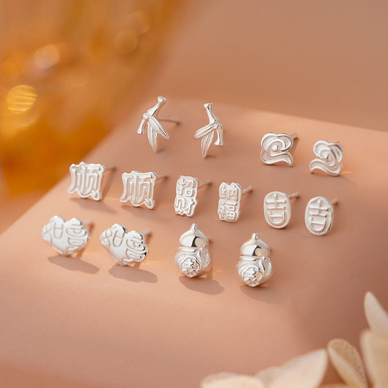 E廠【YC6106E】原創S999足銀墨香雅韻多元素新款耳飾中式獨特清新耳飾 25.03-2