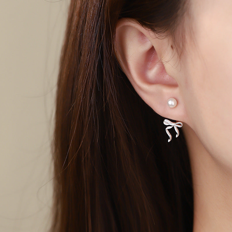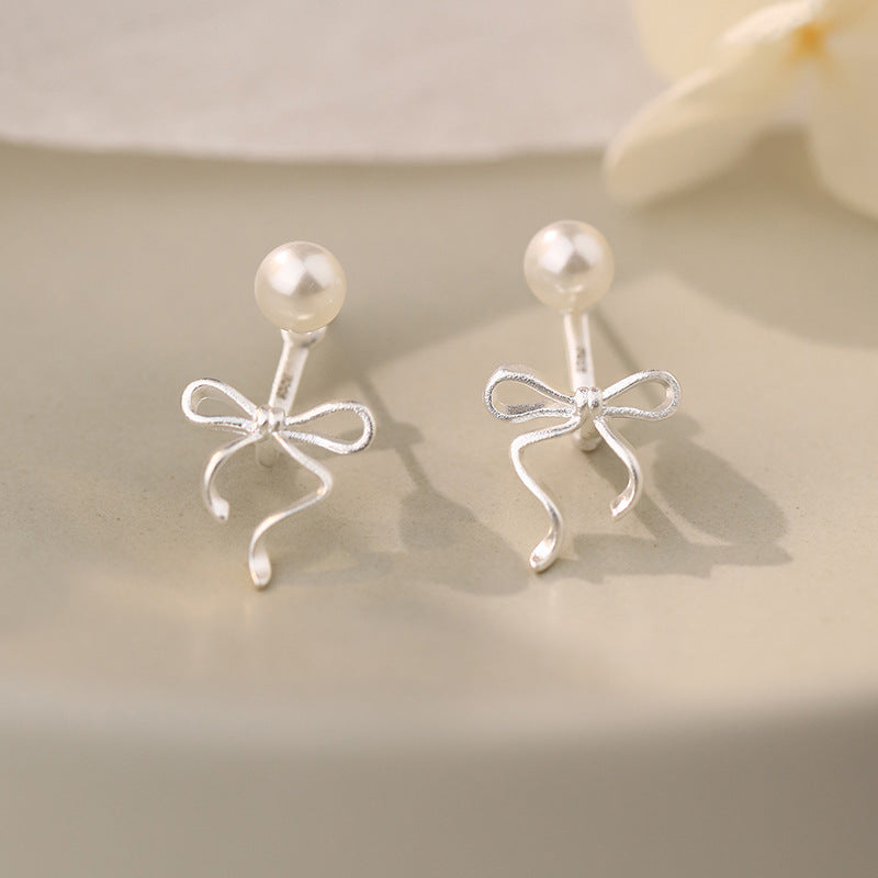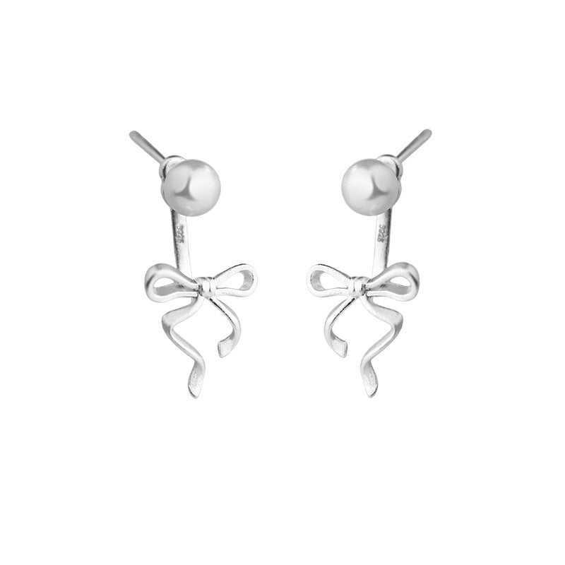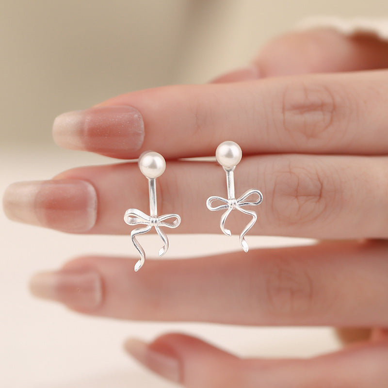 E廠【YC6407E】S925純銀珍珠蝴蝶結後掛式耳環簡約可愛清新甜美小眾耳飾 24.11-4