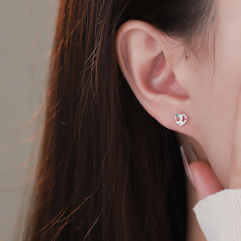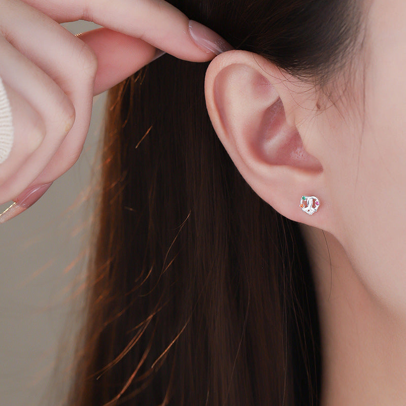 E廠【YC6918E】S999足銀彩鑽愛心耳環氣質輕奢簡約高級感個性小眾耳環 24.12-2