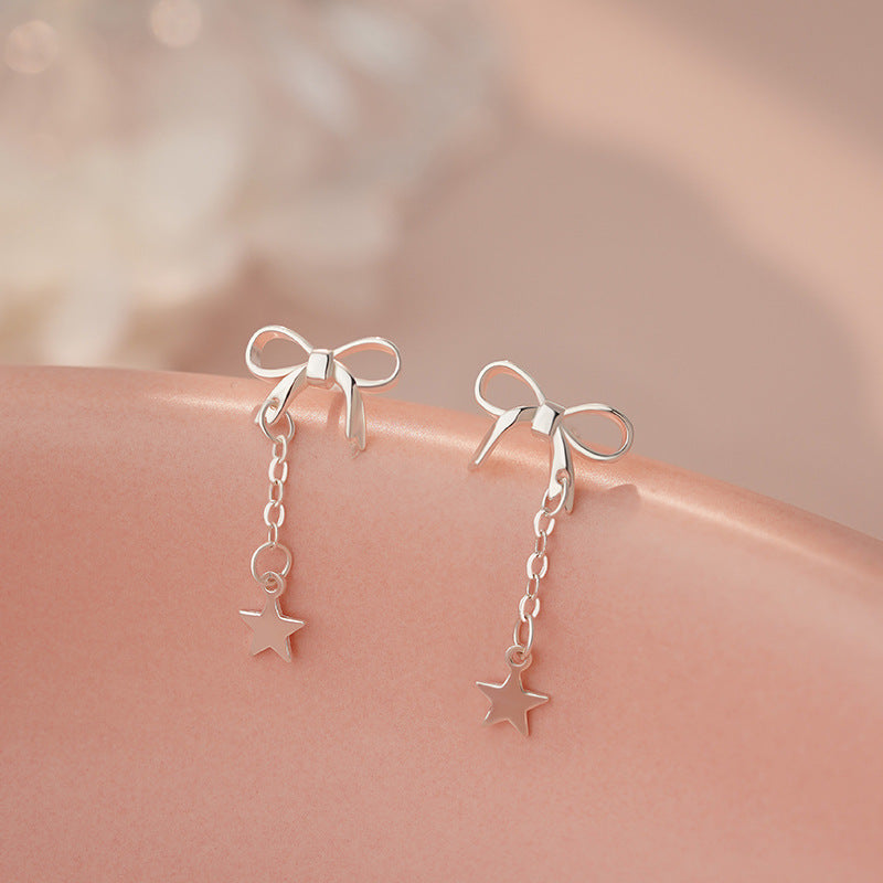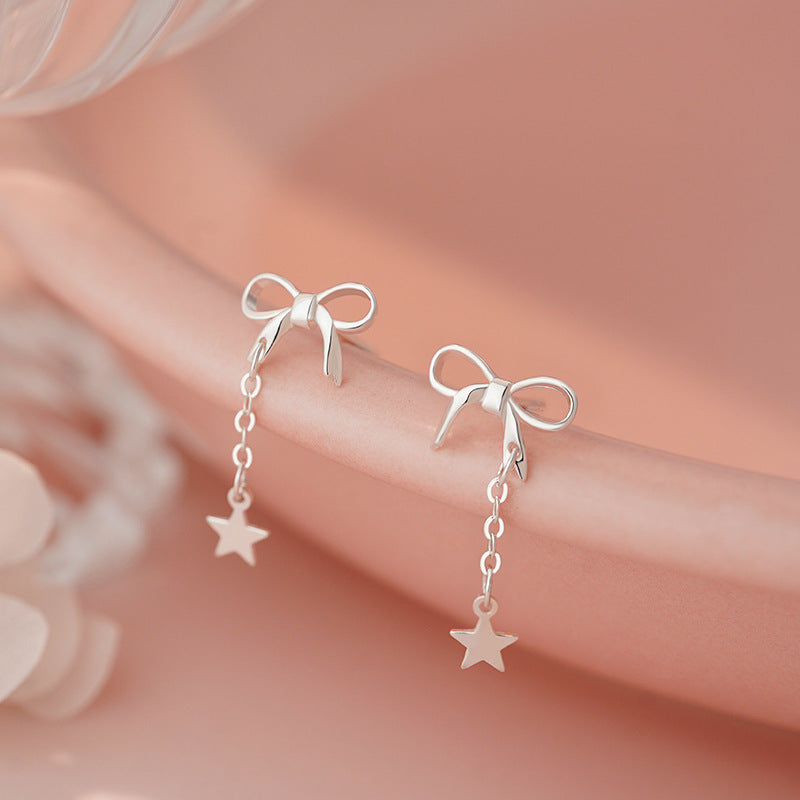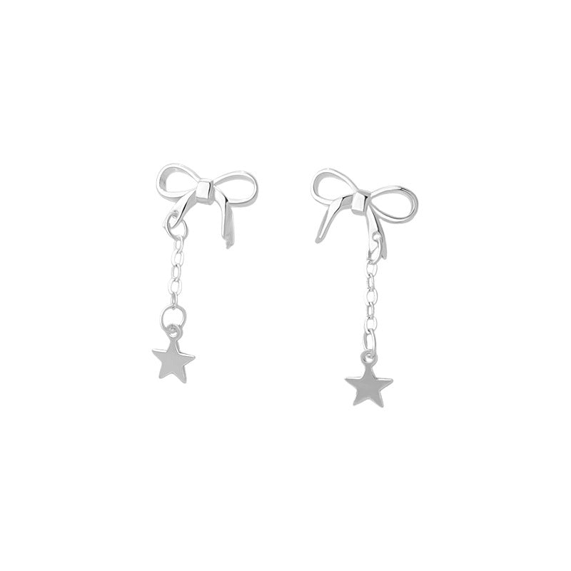 E廠【YC7087E】S925純銀蝴蝶結五角星耳環清新甜美文藝韓系精緻氣質耳飾 25.05-5