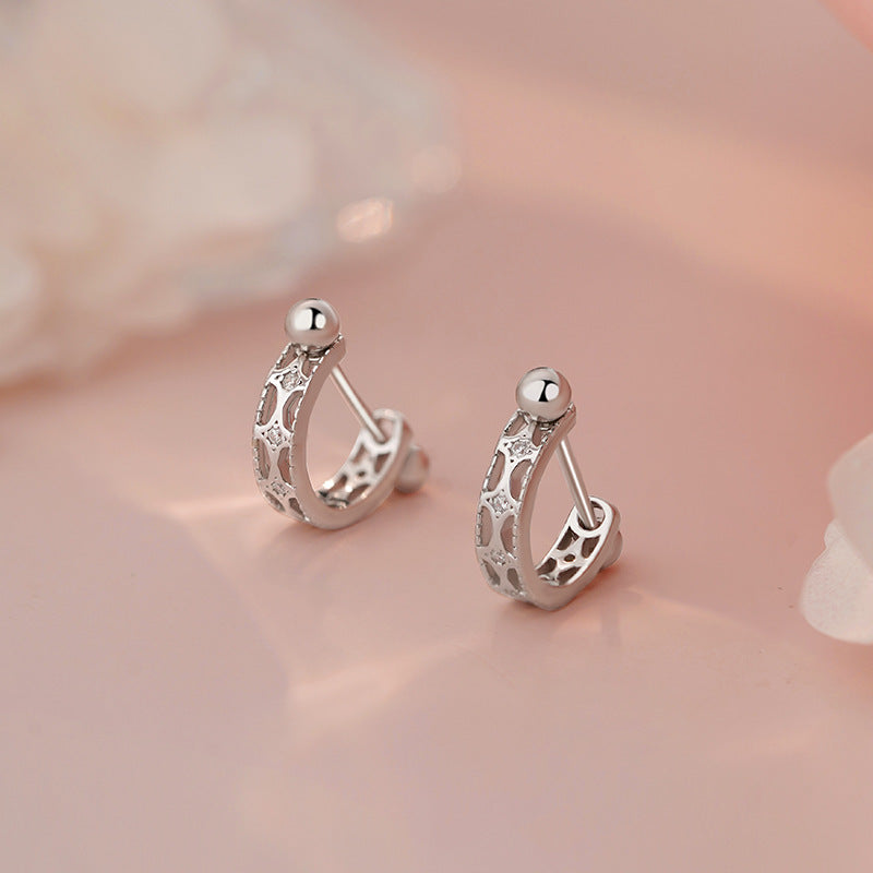 E廠【YC7213E】S999足銀U型螺絲耳環簡約幾何設計感高級文藝風新款耳飾 25.06-3