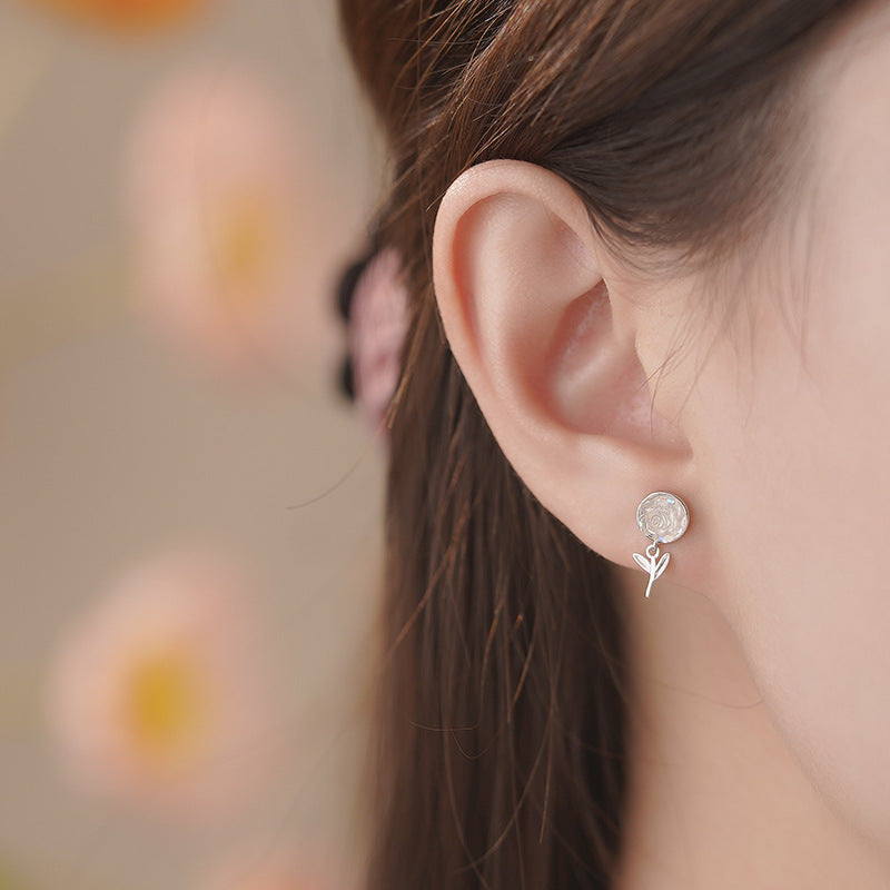 E廠【YC7322E】S999足銀森系玫瑰花耳環女甜美輕奢仙氣百搭小清新耳飾 25.06-3