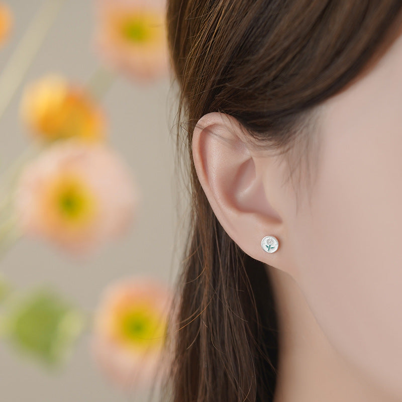 E廠【YC7639E】S999足銀鬱金香耳環文藝風氣質精緻溫柔韓風ins小眾耳飾 25.06-4