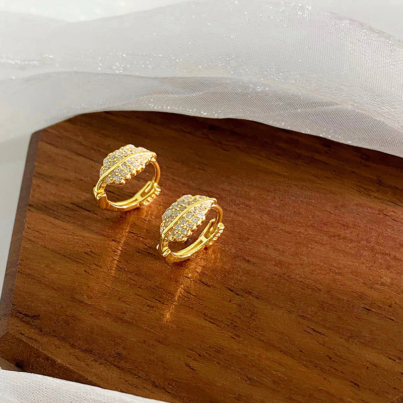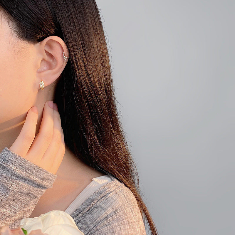 E廠【YC7738E】S925純銀小清新ins百搭樹葉耳扣女爆款高級感2024小眾 24.06-2