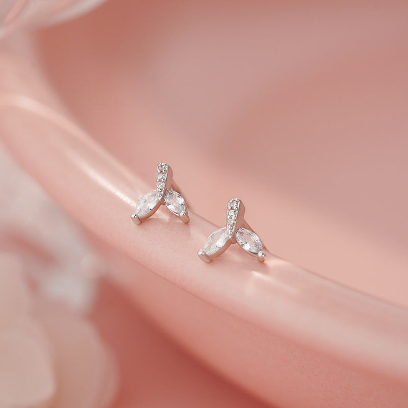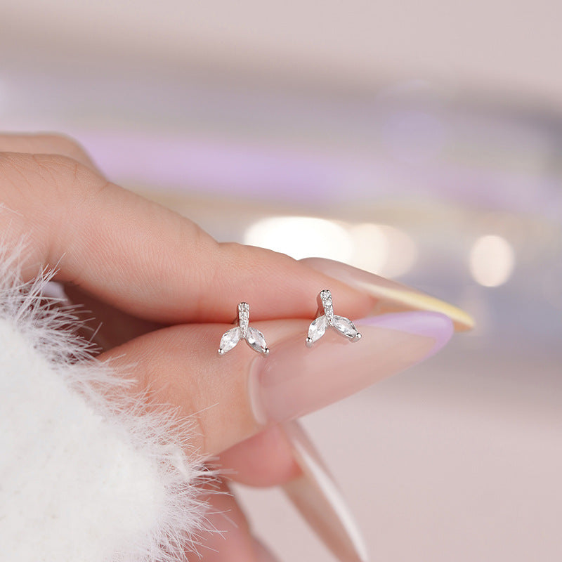 E廠【YC7852E】S999足銀魚尾鋯石耳環輕奢甜美溫柔高級精美養耳洞耳飾 25.07-1