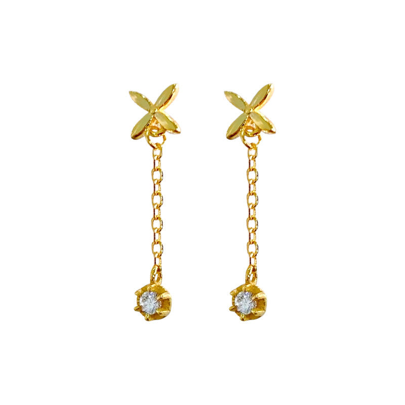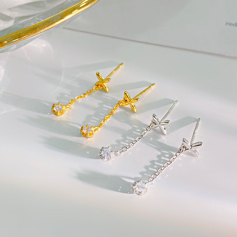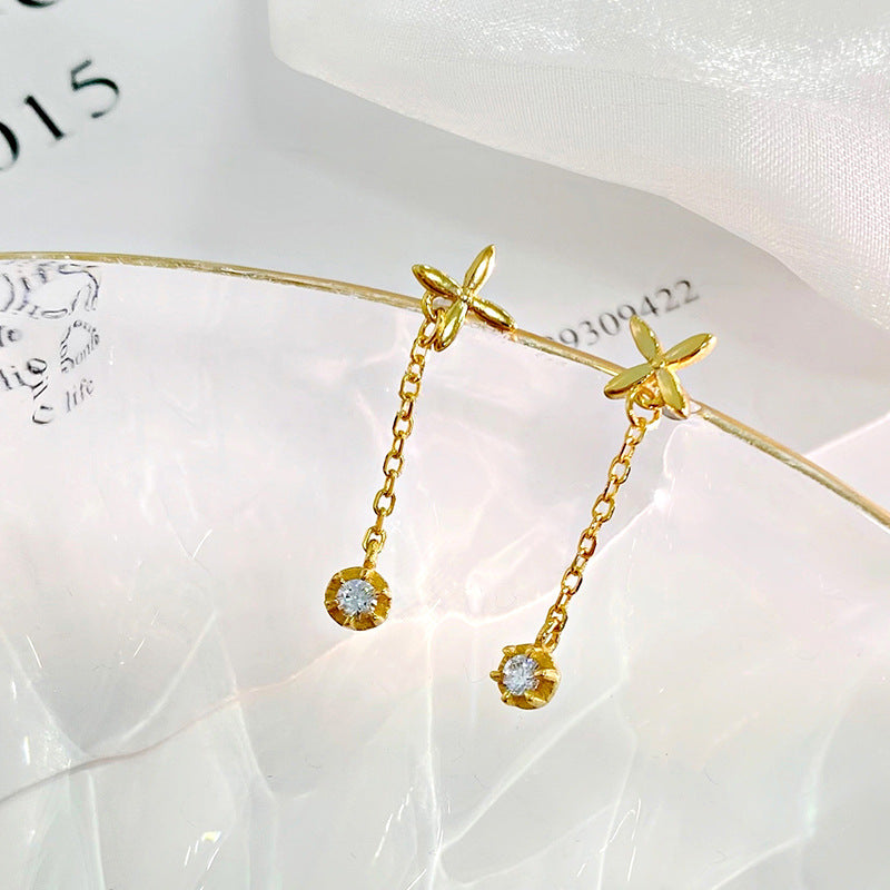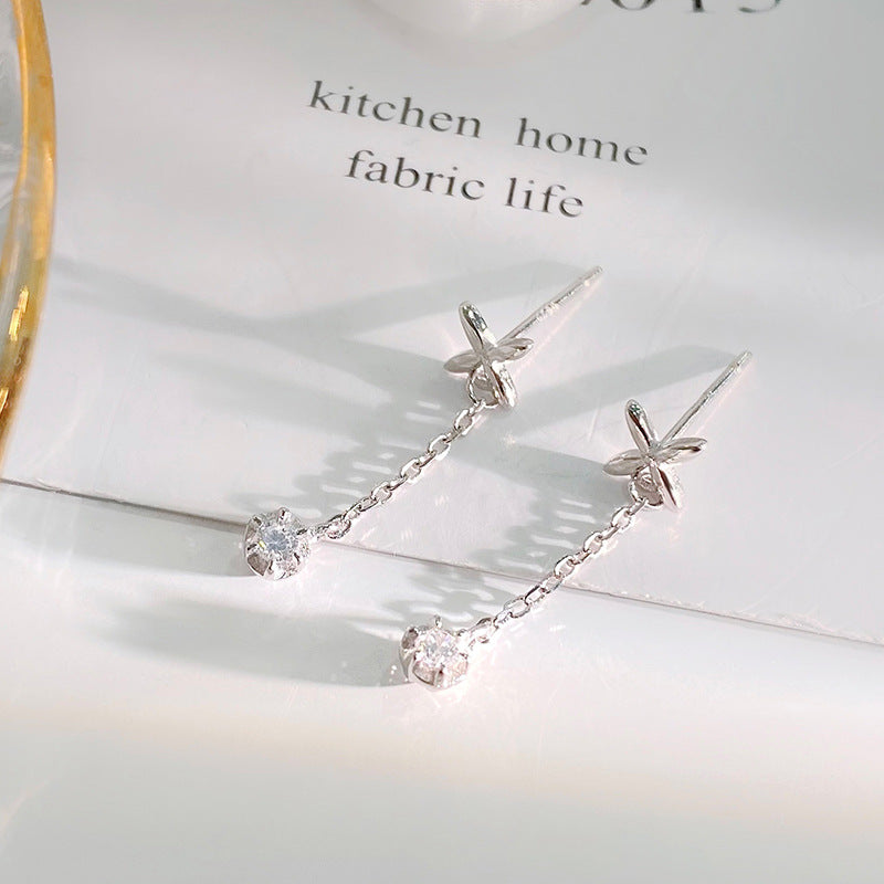 E廠【YC8000E】S925純銀精美花朵鋯石流蘇耳環輕奢時尚高級感長耳環顯臉瘦 24.01-4